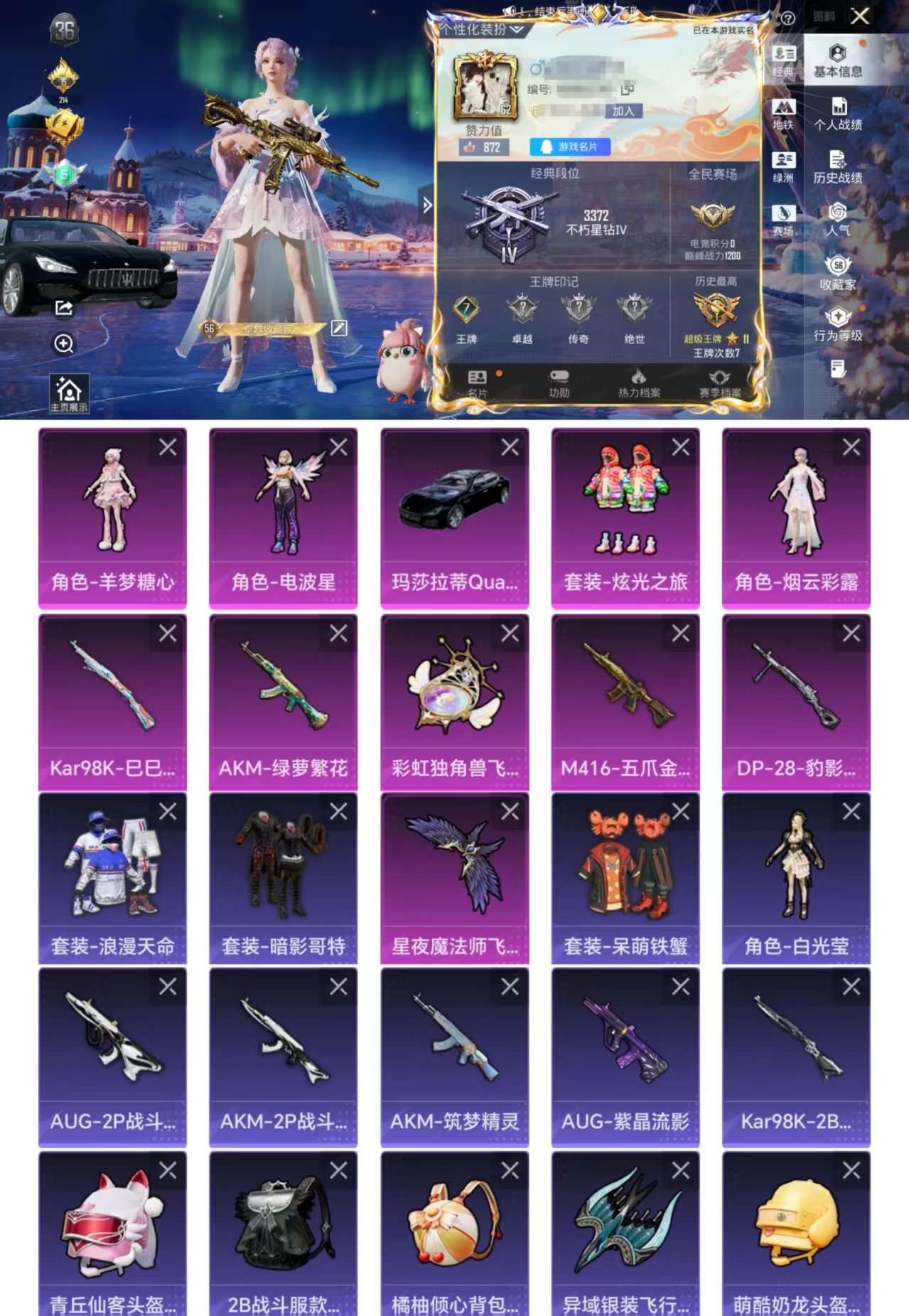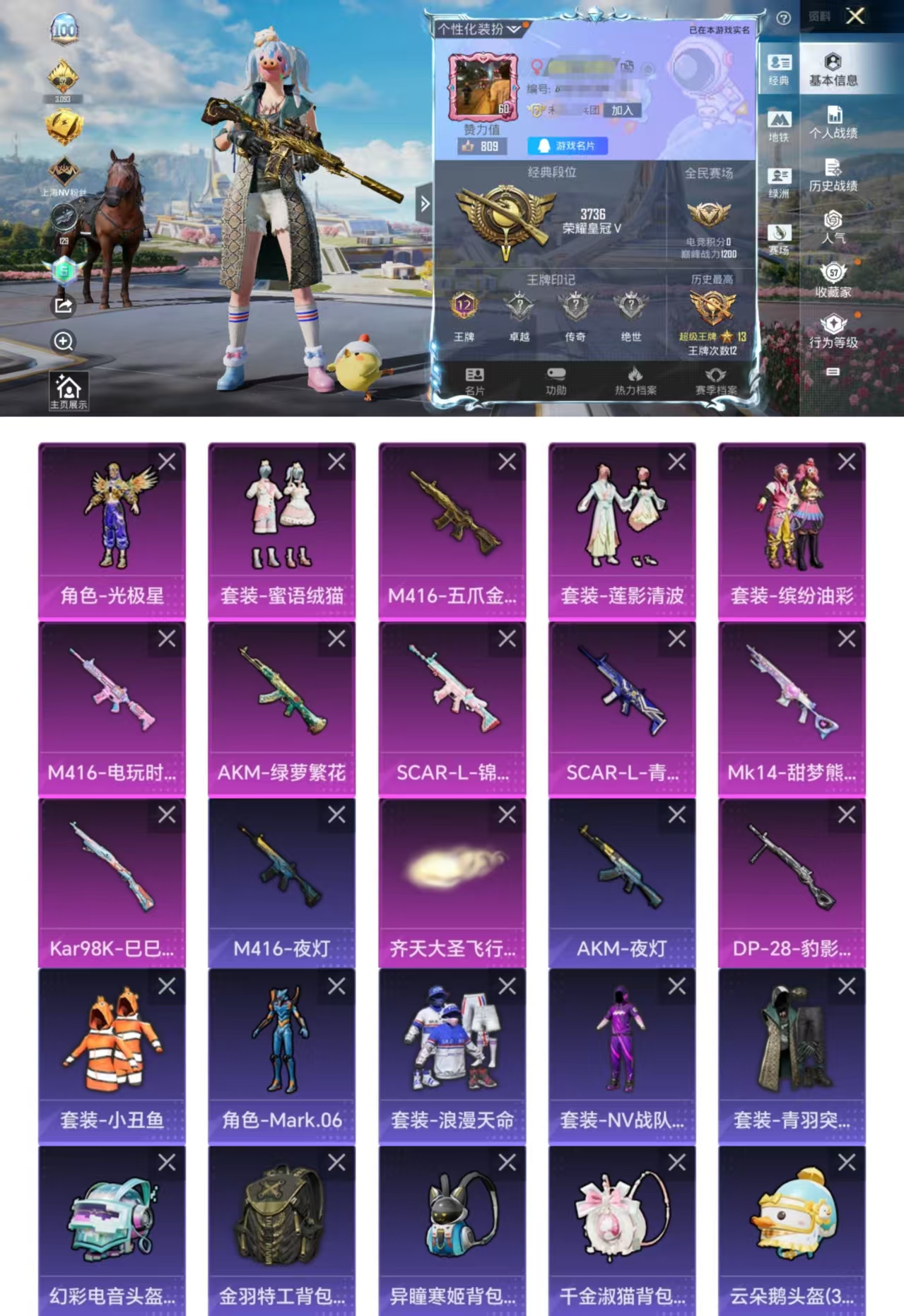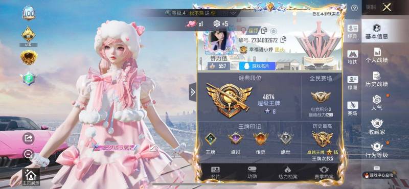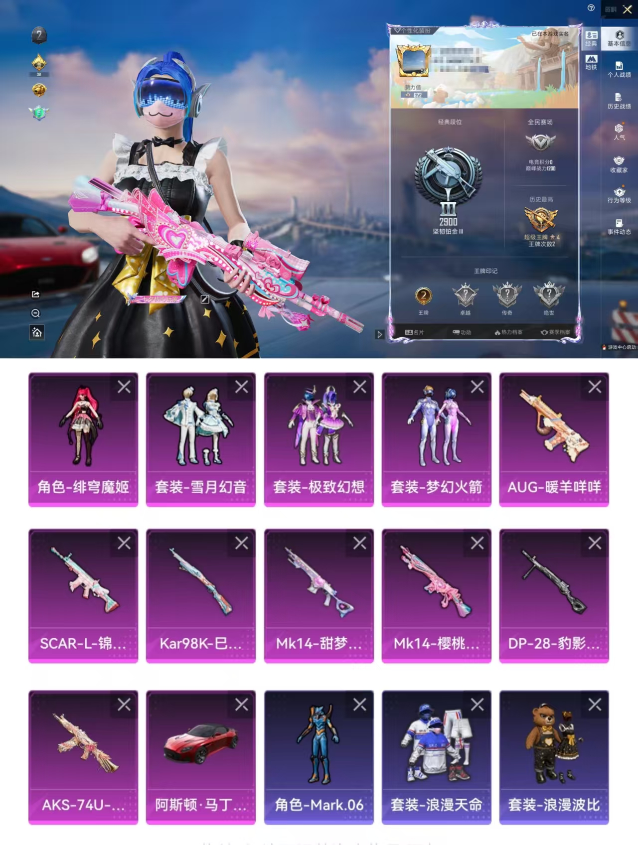 4粉装-5特效枪-1载具-2粉色飞行器-42196热力值-10王牌印记-98套装-136枪皮
