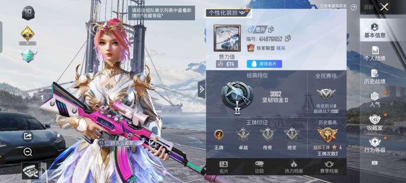 4粉装-5特效枪-0载具-2粉色飞行器-40684热力值-2王牌印记-82套装-145枪皮