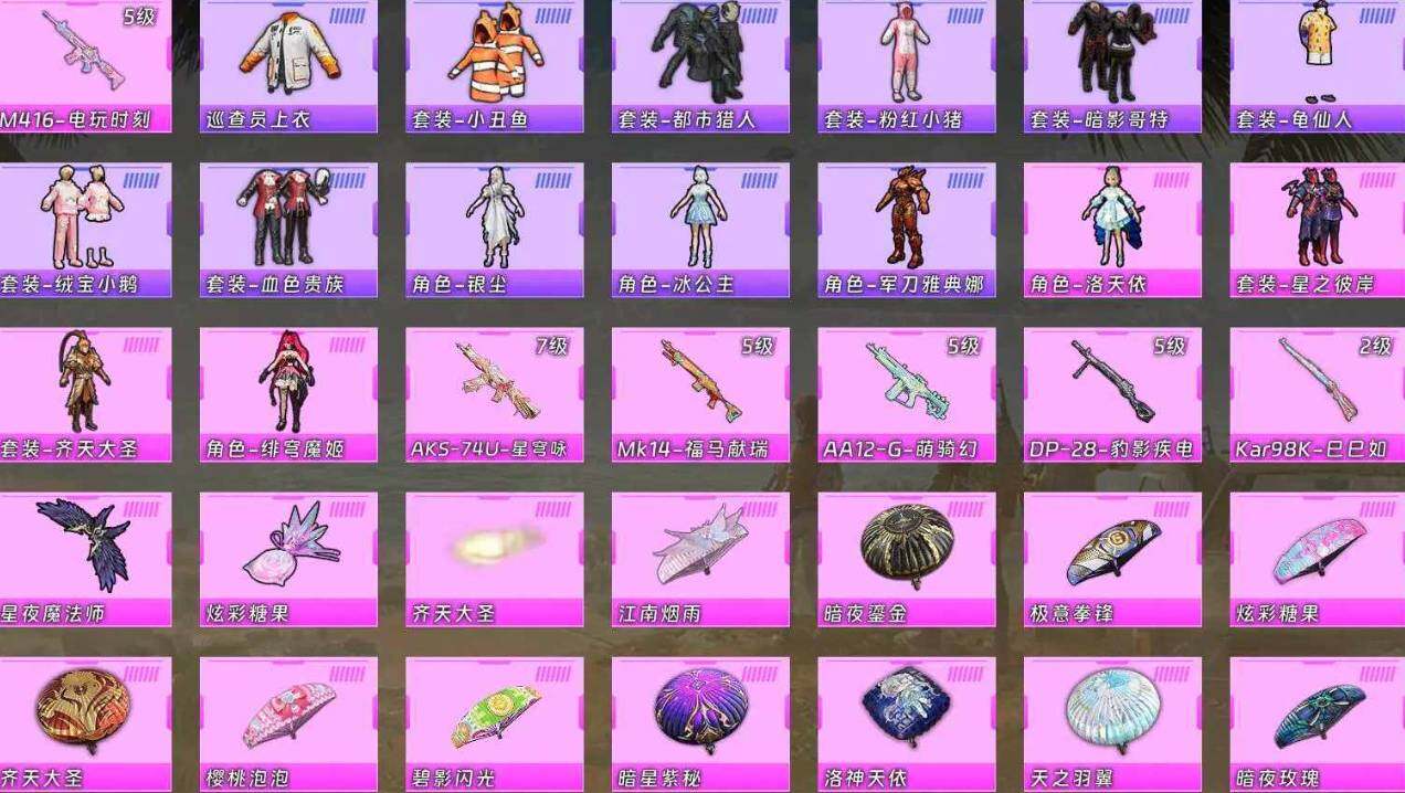 1粉装-7特效枪-0载具-0粉色飞行器-54710热力值-13王牌印记-167套装-183枪皮