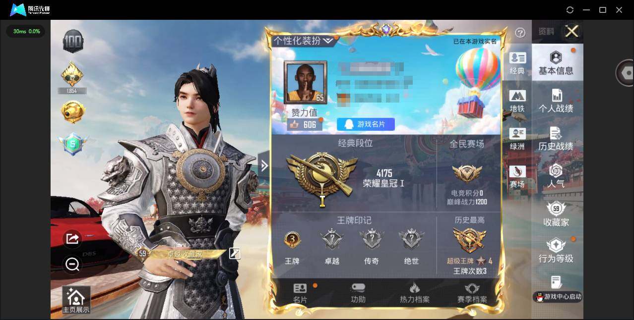 【和平精英连体王者荣耀】实名: 可修改 时装数: 166 载具数: 2 枪械数