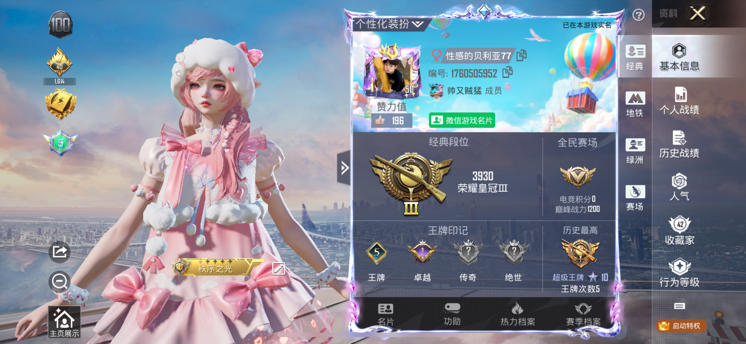 苹果 手Q-6粉装-3特效枪-1载具-4粉色飞行器-60367热力值-15王牌