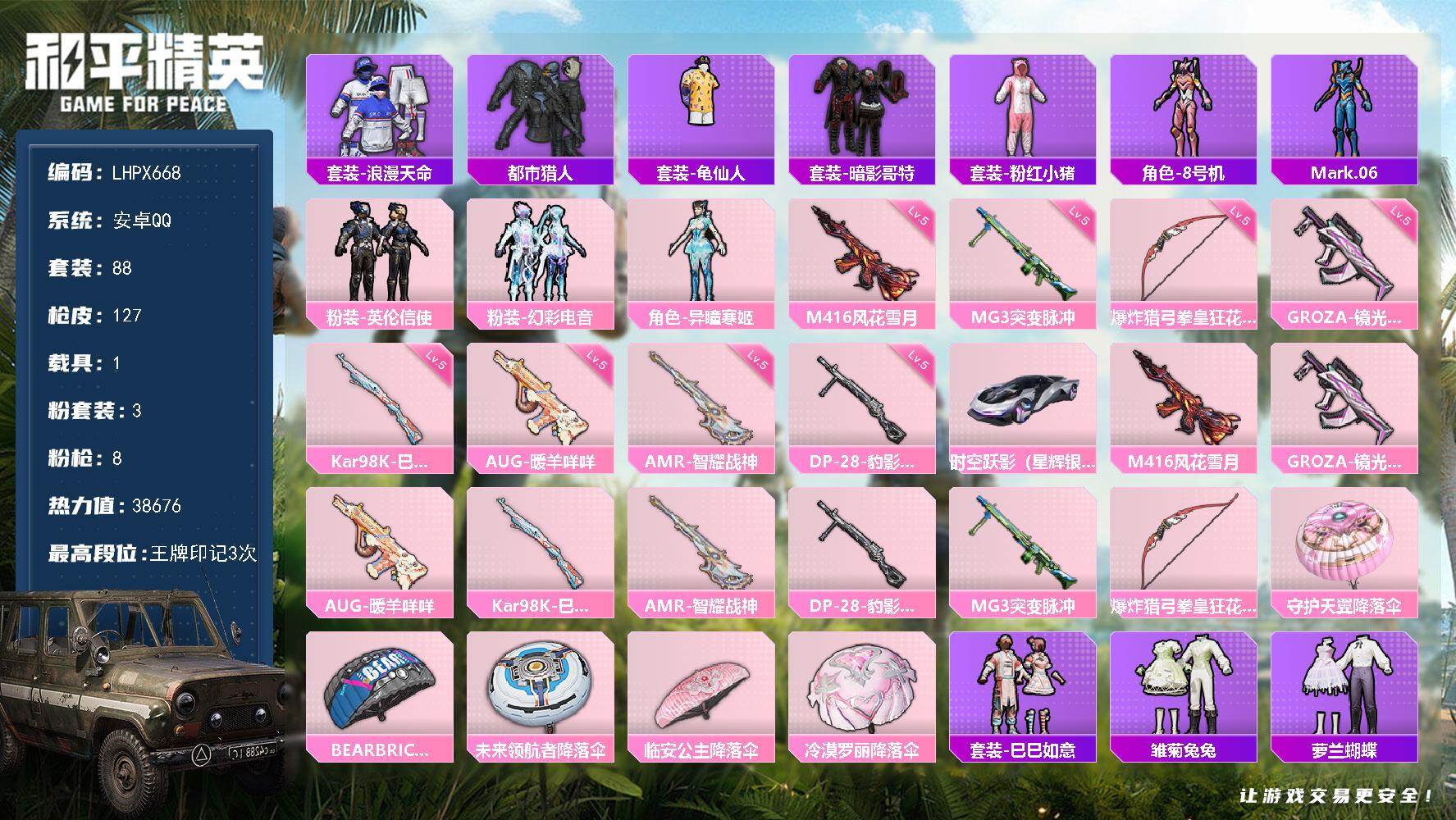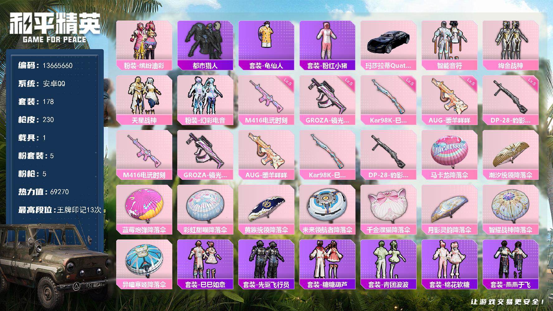 a4180/安卓v/-6王牌印记-4粉装-3特效枪-1载具-26780热力值-68套装-67枪皮