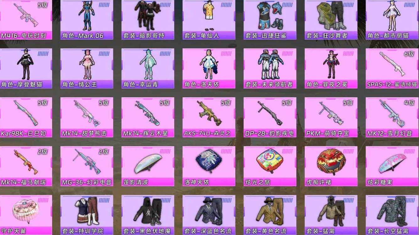 2粉装-5特效枪-2载具-2粉色飞行器-45924热力值-9王牌印记-121套装-149枪皮