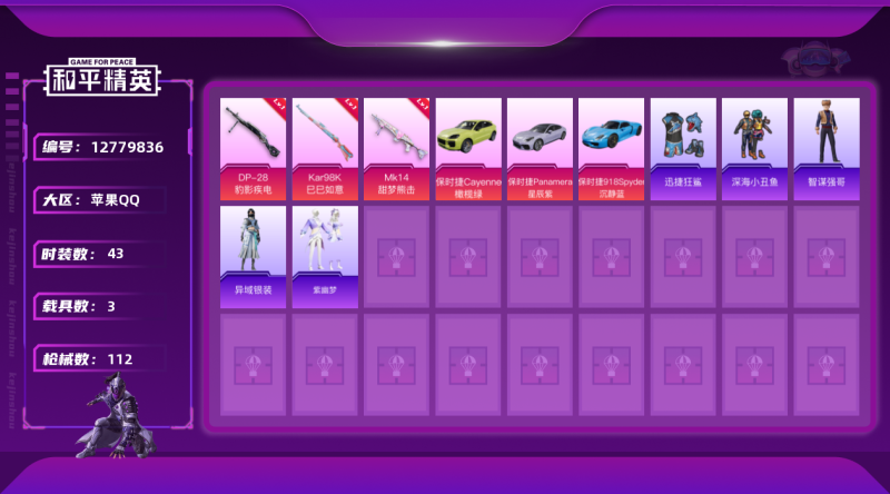 hs54374 苹果手Q-4王牌印记-2粉装-5特效枪-1载具-35360热力值-80套装-114枪