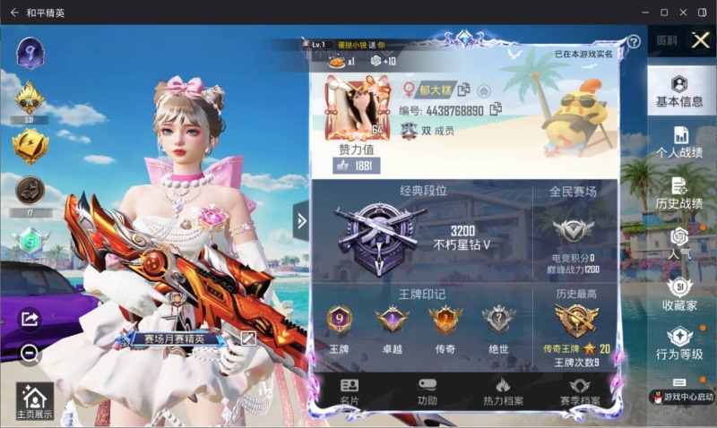 183套装/枪械7/装备253/战备186/王牌印记14/热力值65880/五