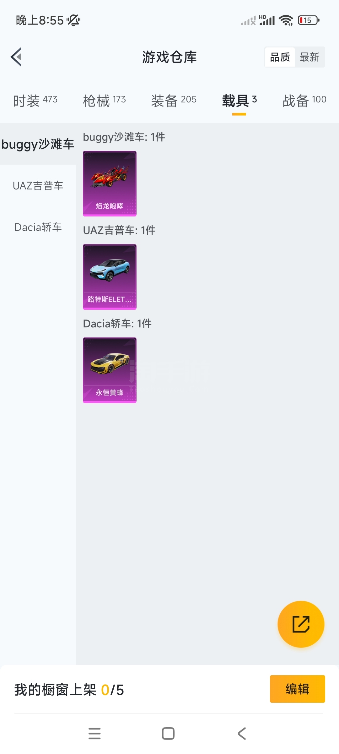 时装325 枪械160 装备173 载具2 战备91