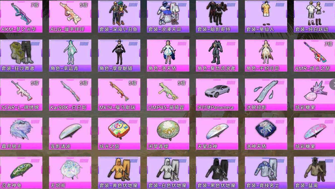 3粉装-7特效枪-1载具-2粉色飞行器-33715热力值-11王牌印记-72套装-94枪皮