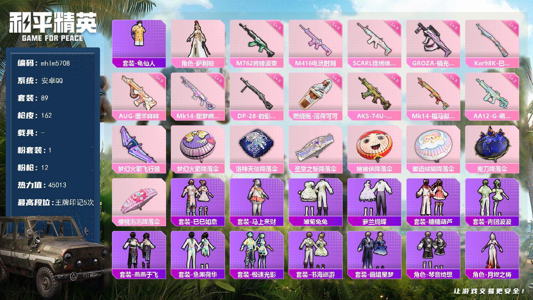 安卓 手Q-4粉装-4特效枪-3载具-2粉色飞行器-58003热力值-9王牌印记
