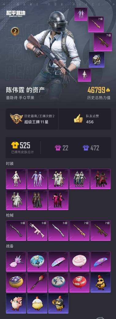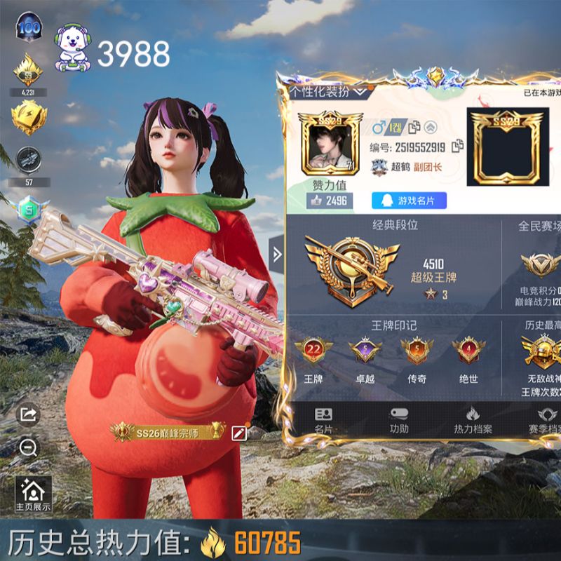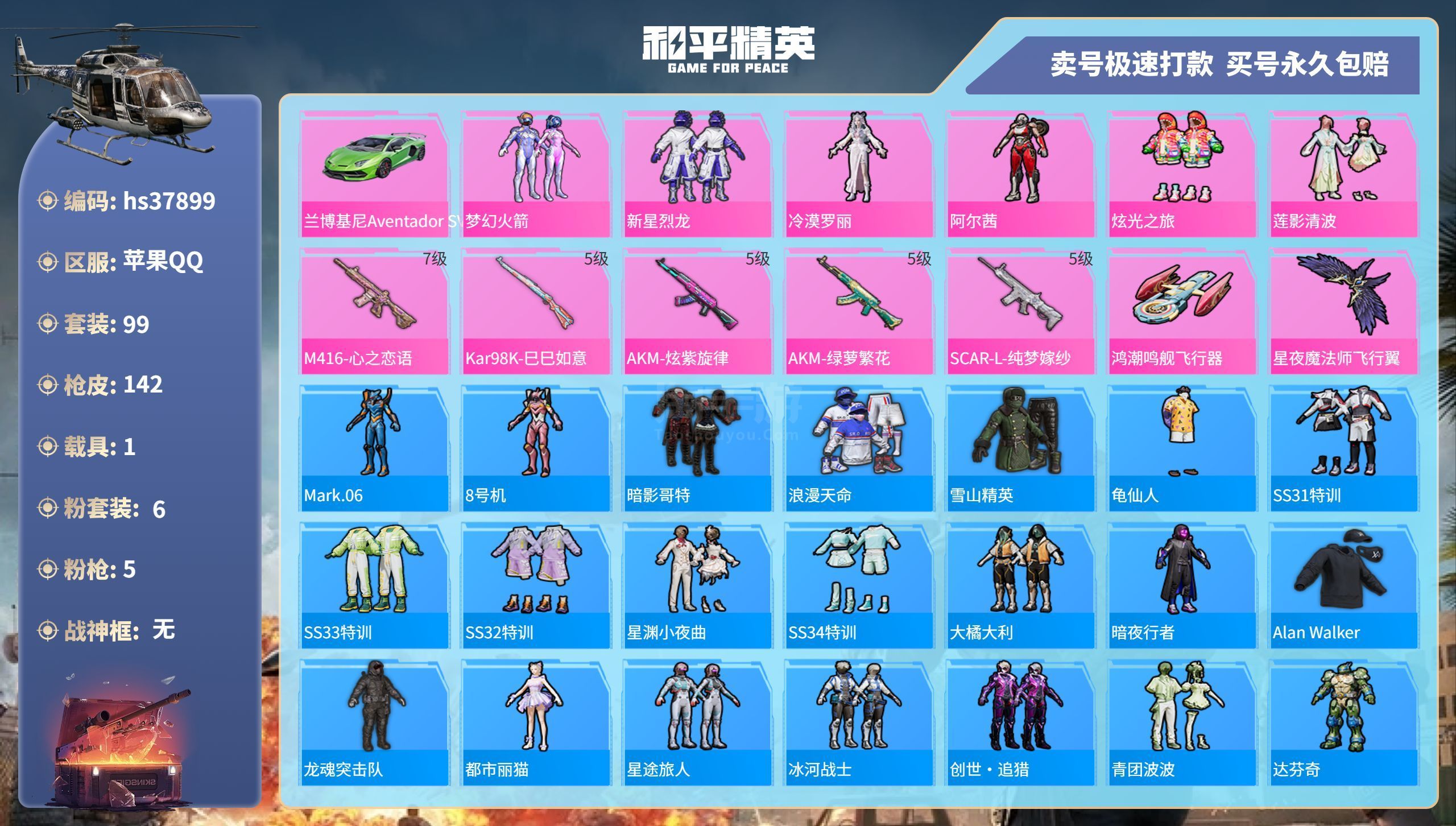 hs37899 苹果手Q-6王牌印记-6粉装-5特效枪-1载具-46185热力值-99套装-142枪