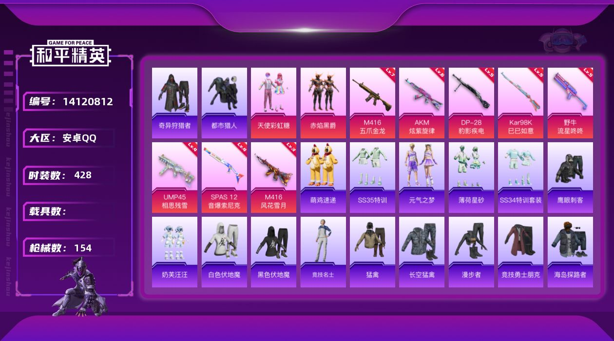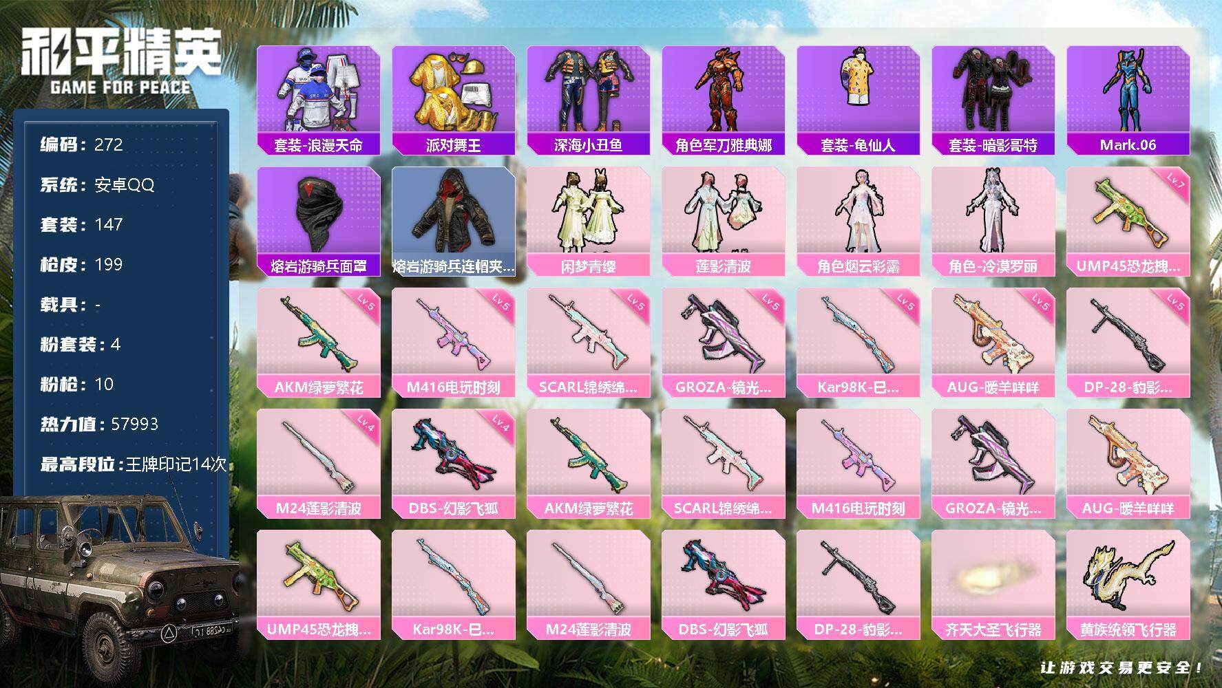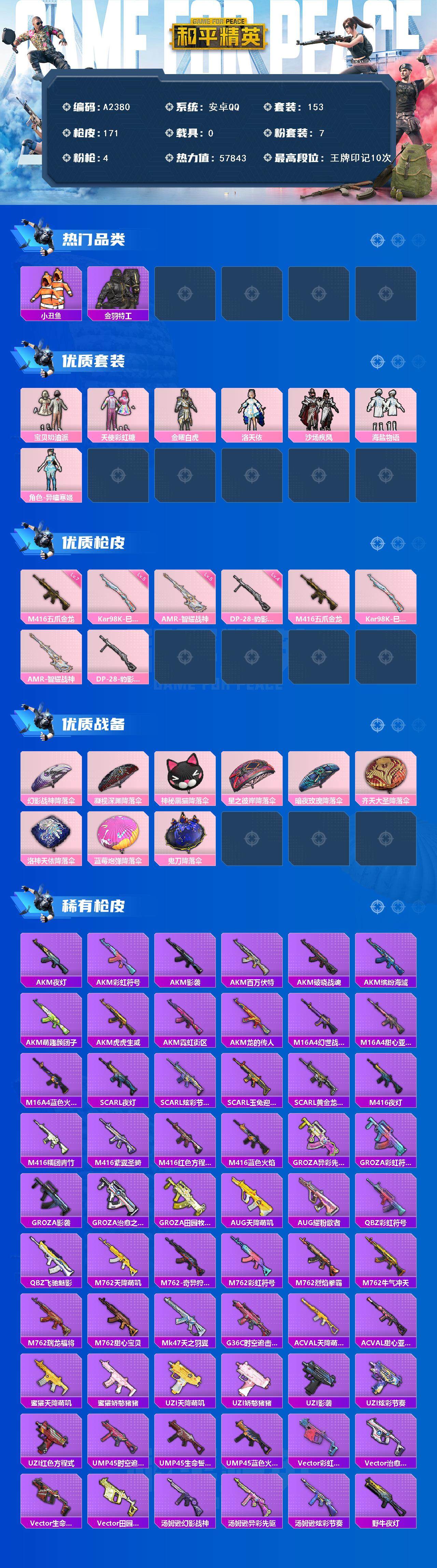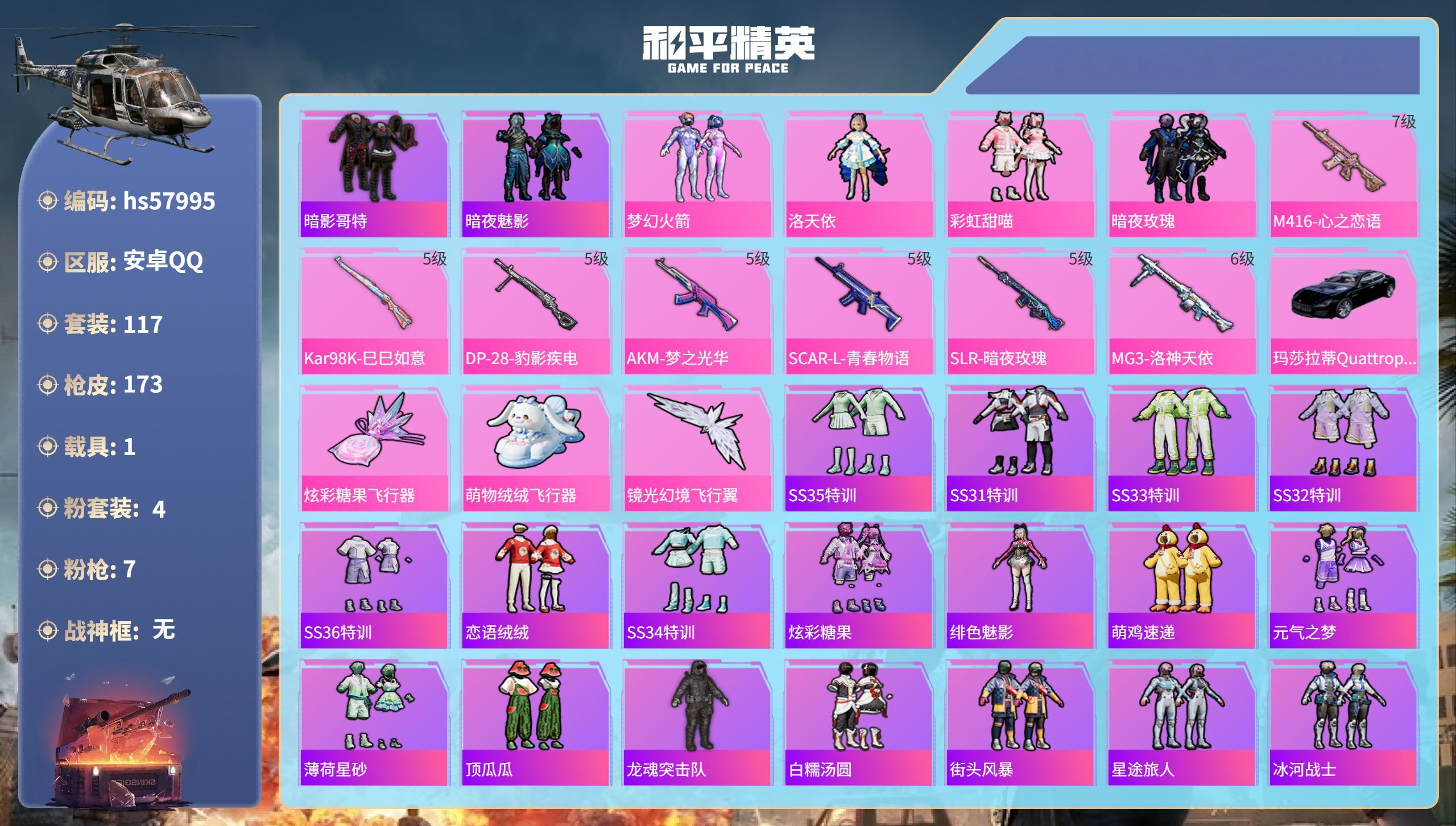 hs57995 安卓手Q-15王牌印记-4粉装-7特效枪-1载具-59282热力值-117套装-17
