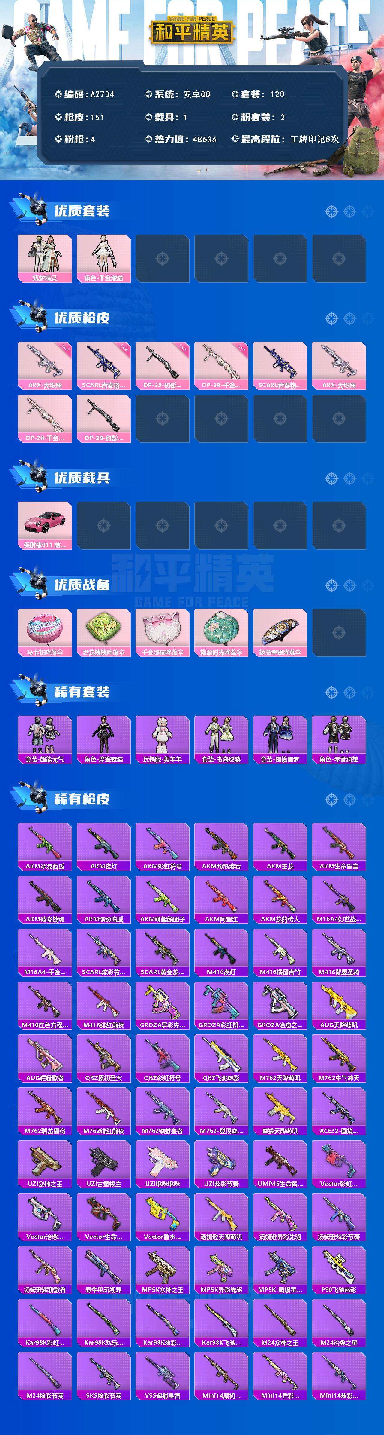 2粉装-4特效枪-1载具-0粉色飞行器-48636热力值-8王牌印记-120套装-151枪皮