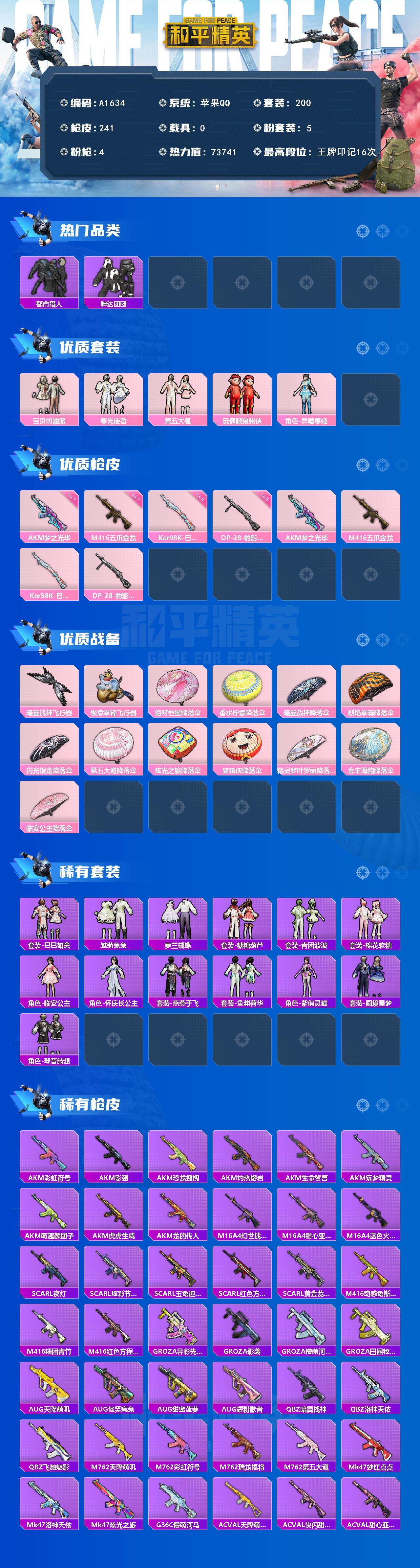hs53025 苹果手Q-14王牌印记-有战神框-2粉装-4特效枪-56482热力值-118套装-1