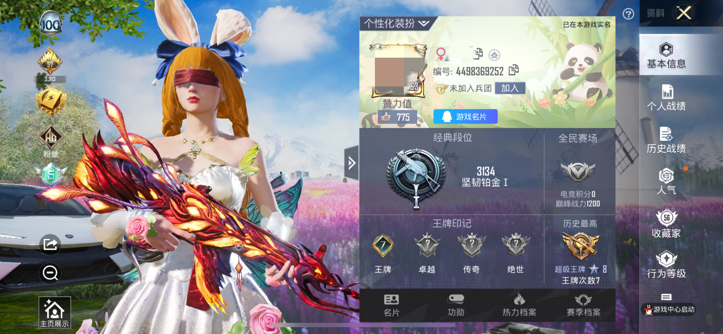热力值53938 2载具1僚机 6粉 9特效枪 仰望U9(赤霞丹朱) 灵鼠银迹 萌兔起飞 3级AKM