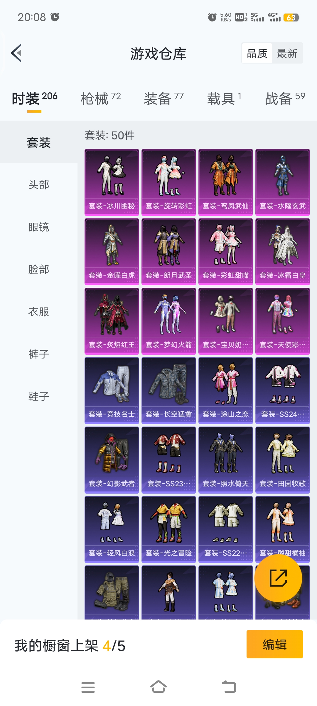 梦幻火箭等12套粉装,4级五爪,4级m762,3级GROZA特效枪