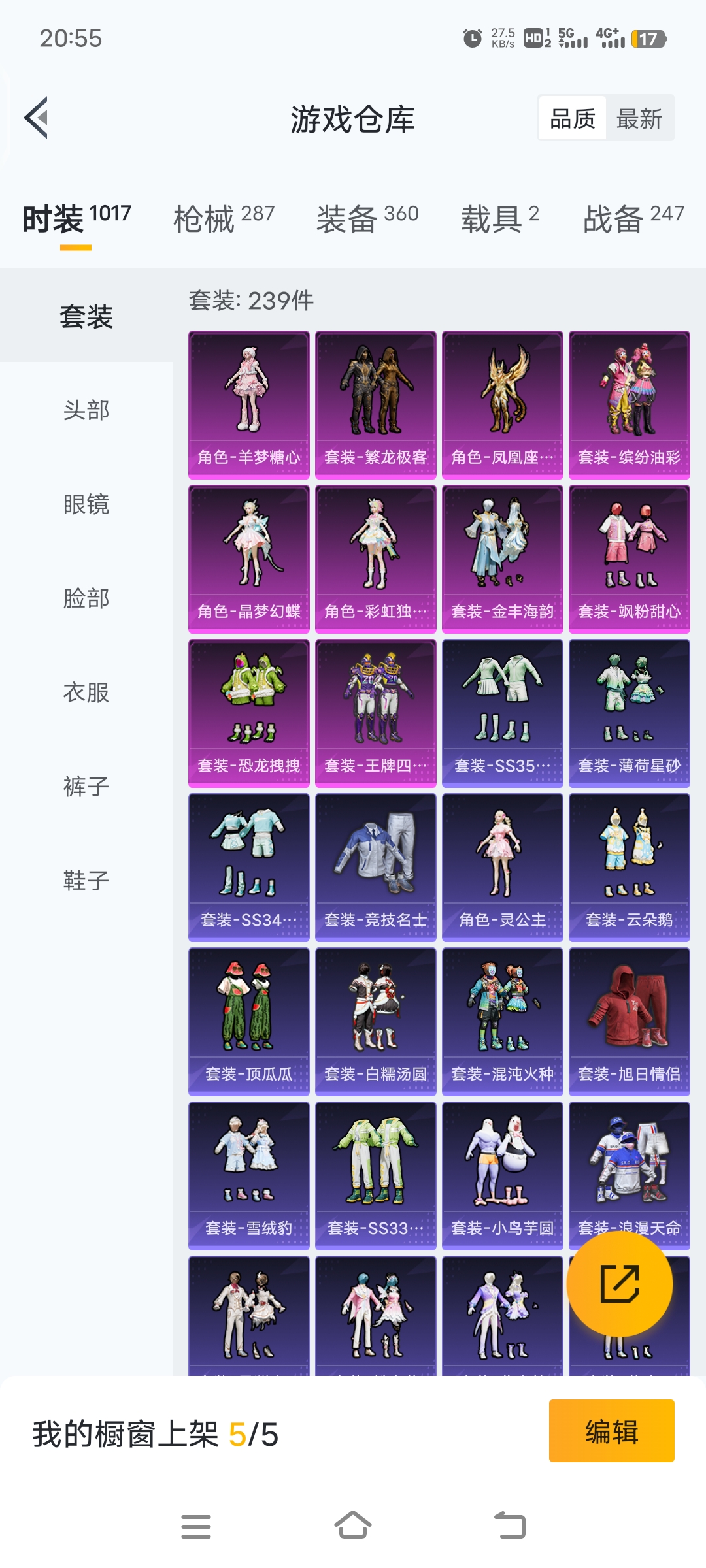 安卓Q-2稀有1载具8粉装4特效枪17热门74套装99枪皮 36776热力值 7印记 历史超级王牌1