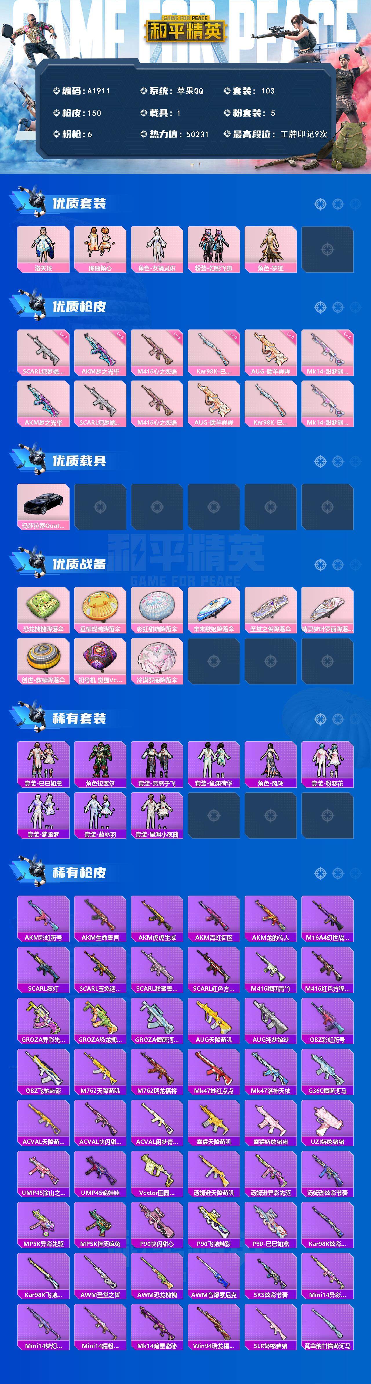 a4224/苹果QQ/热力值:57034,10粉装,3粉枪,2载具,10粉色战备,132套装,163