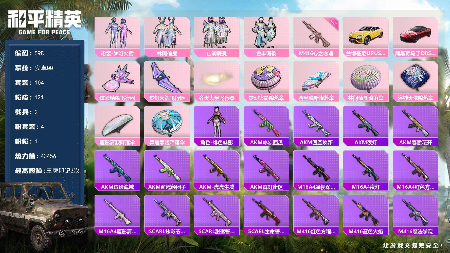 安卓 手Q-4粉装-9特效枪-1载具-5粉色飞行器-74614热力值-13王牌