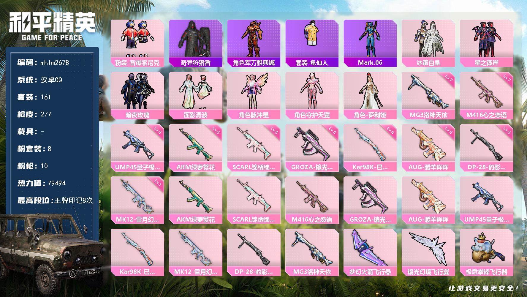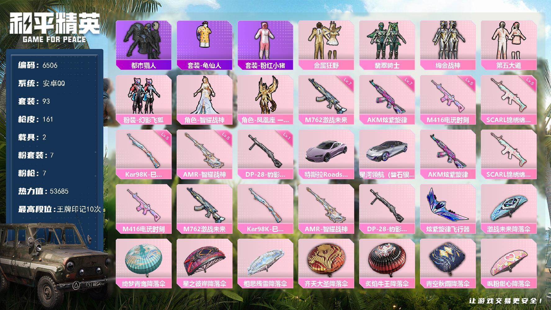 【6506】7粉装-7特效枪-2载具-53685热力值-10印记-93套装-1
