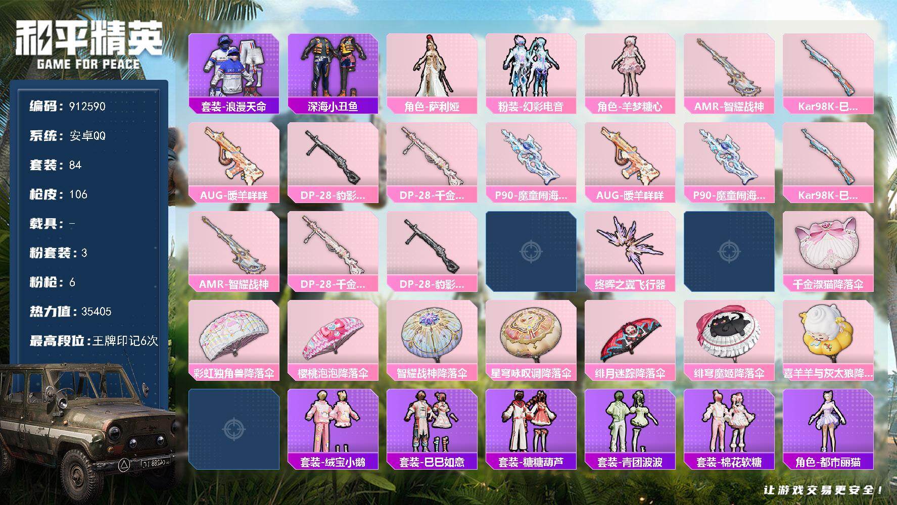 84套装/枪械6/装备176/战备92/王牌印记6/热力值35405/