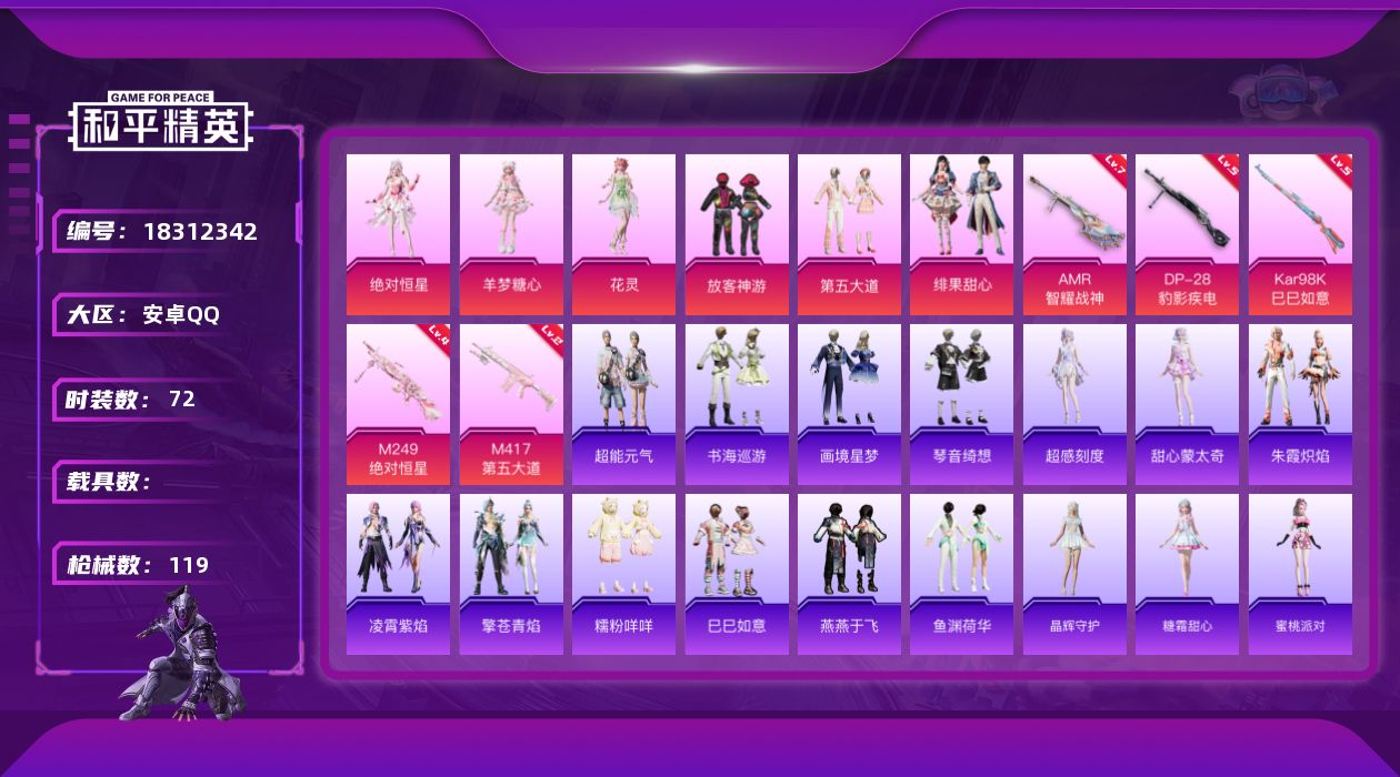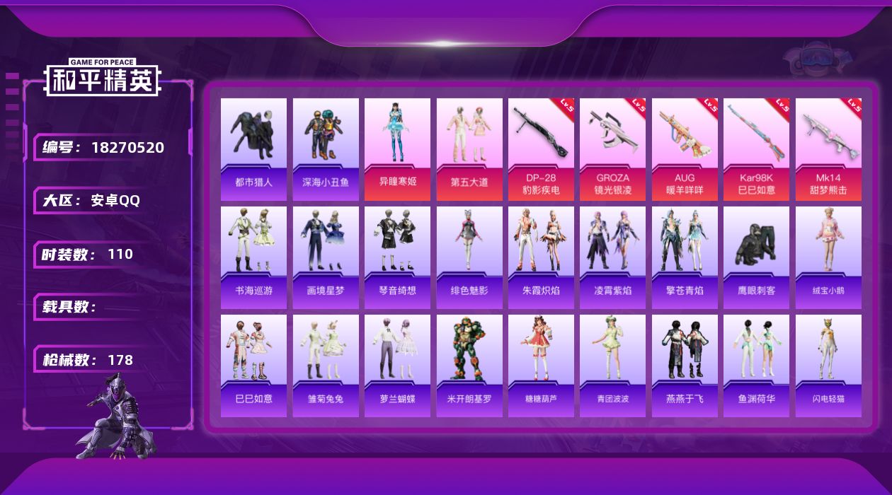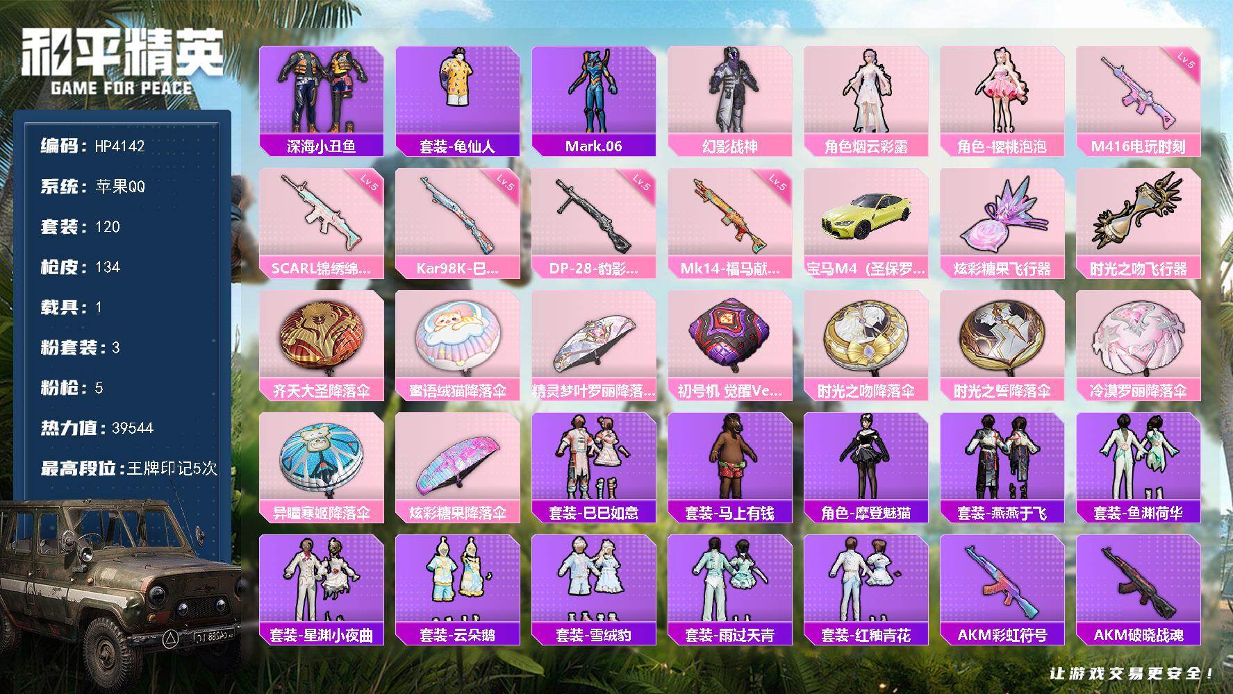 112套装/枪械2/装备192/战备109/王牌印记7/热力值47045/