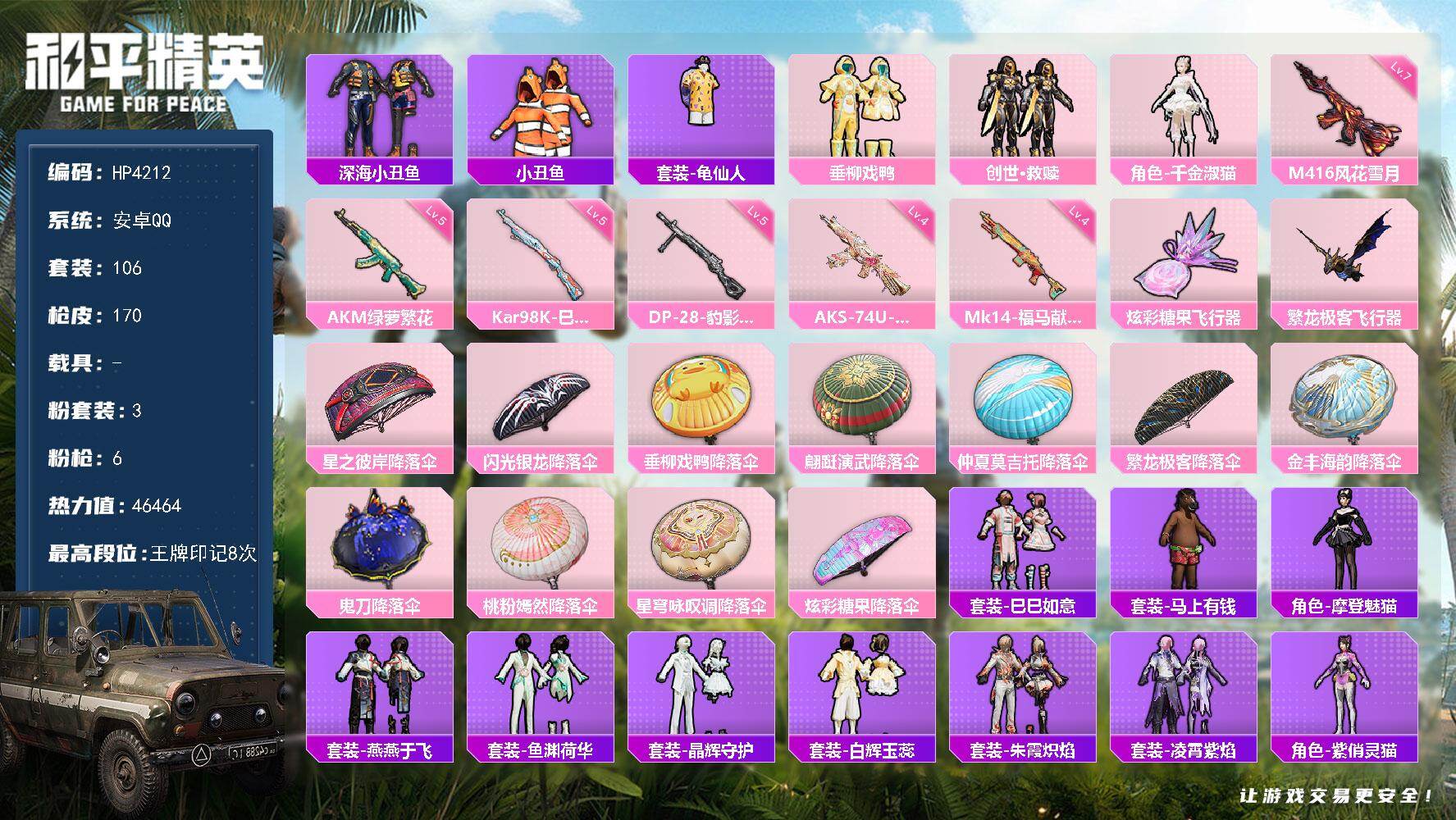 106套装/枪械6/装备177/战备118/王牌印记8/热力值46464/