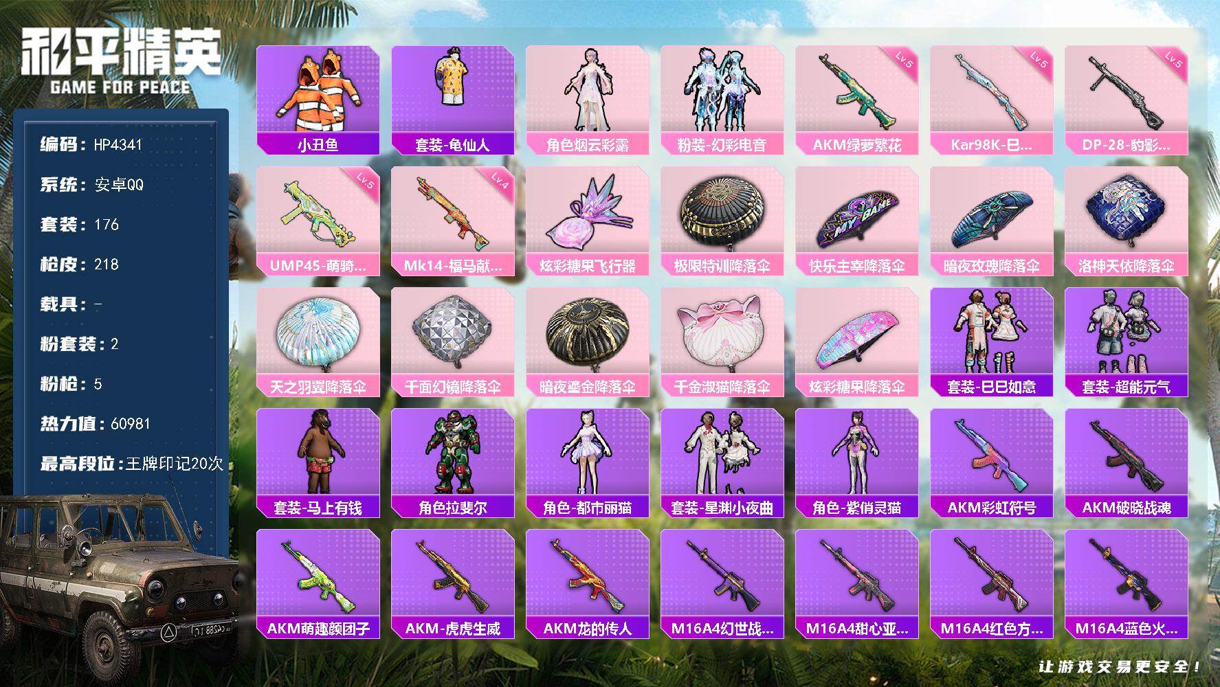 10王牌印记-有战神框-4粉装-5特效枪-61559热力值-173套装