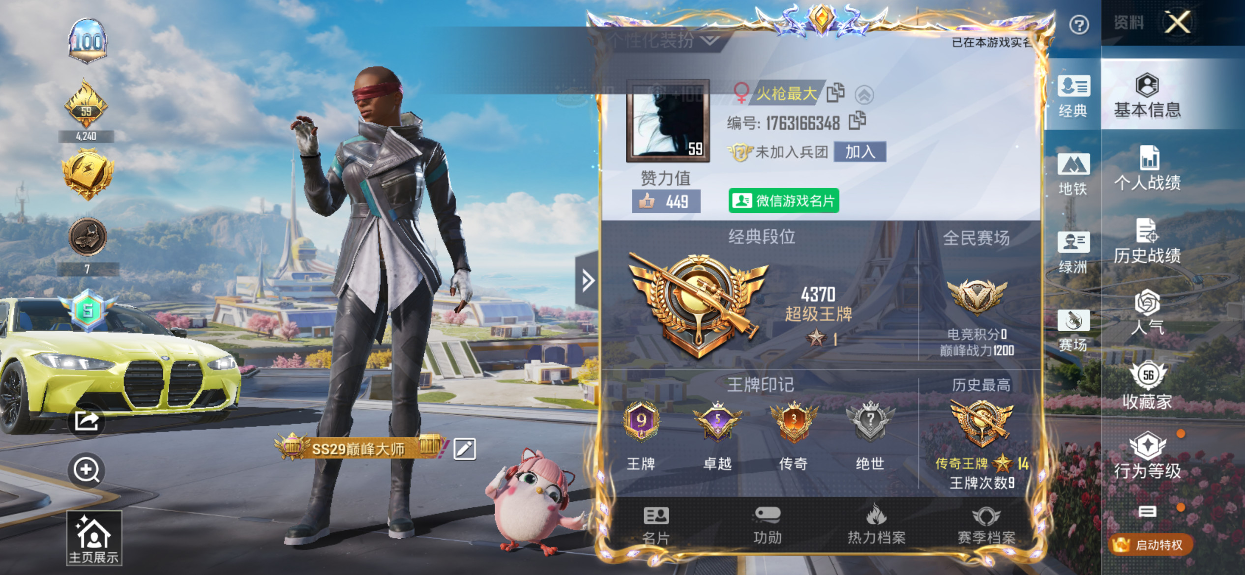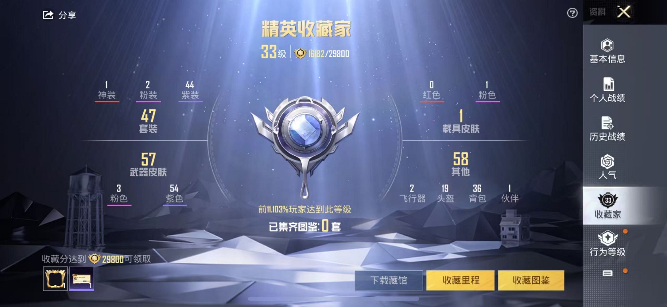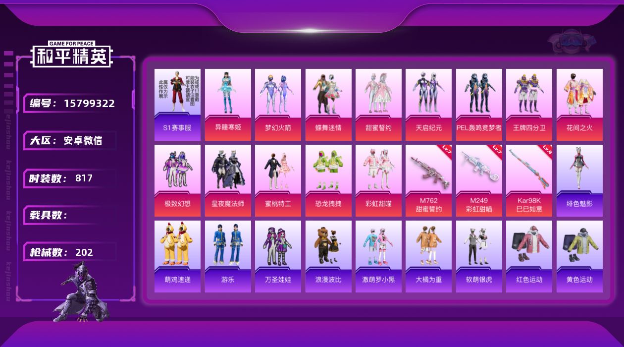 3粉装-4特效枪-1载具-1粉色飞行器-43543热力值-8王牌印记-90套装-156枪皮