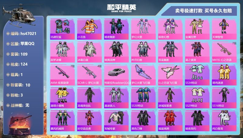 hs47021 苹果手Q-6王牌印记-10粉装-3特效枪-1载具-45357热力值-109套装-12