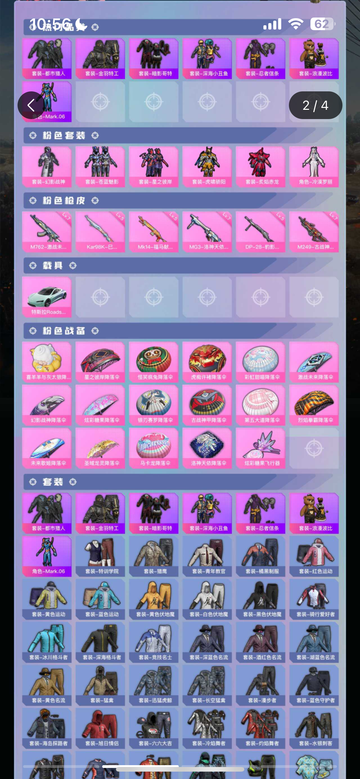 苹果 手Q-4粉装-4特效枪-1载具-0粉色飞行器-49516热力值-6王牌印