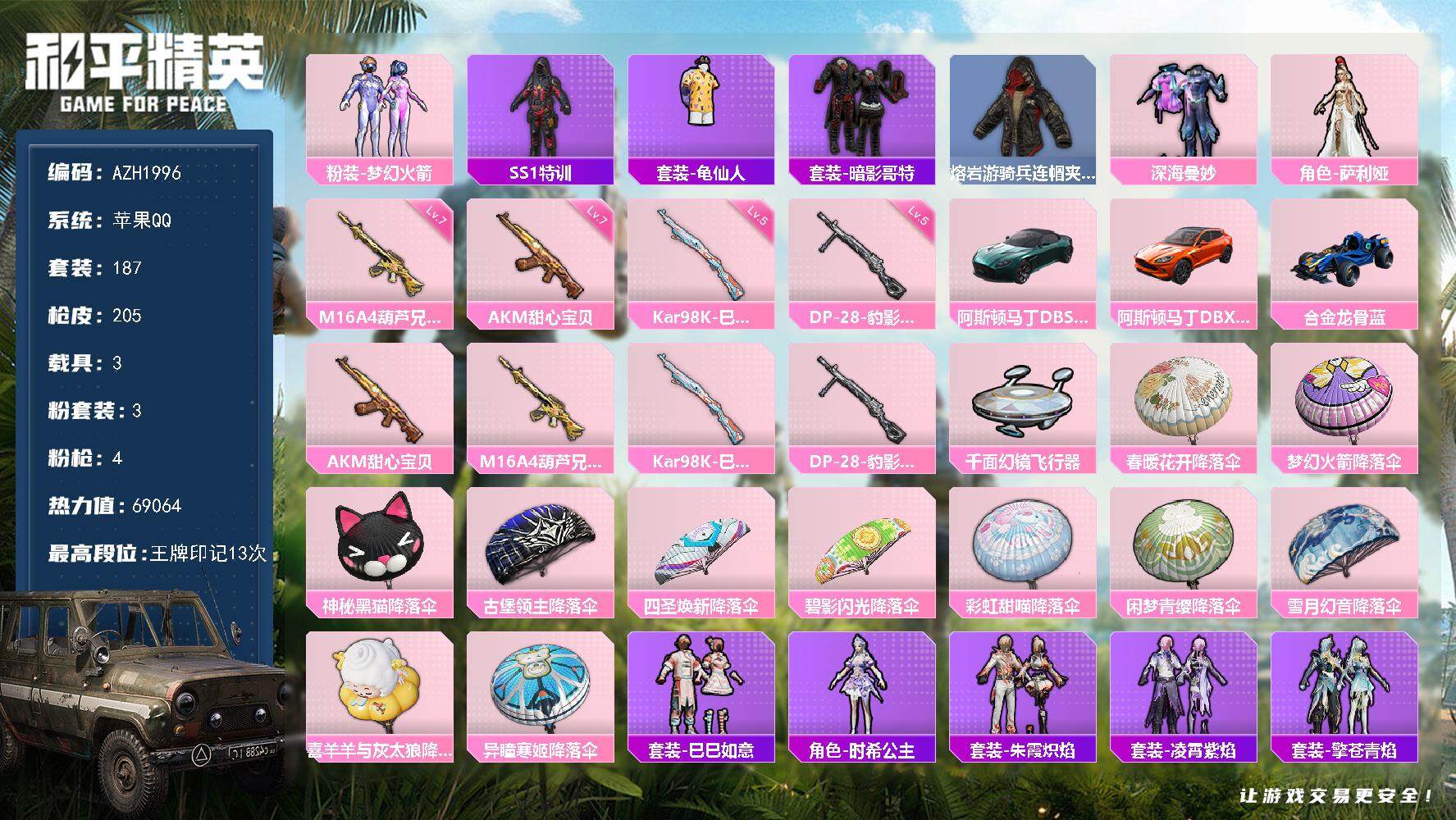 【AZH1996】苹果 手Q【13印记 梦幻火箭暗影哥特 满级甜心宝贝AKM满