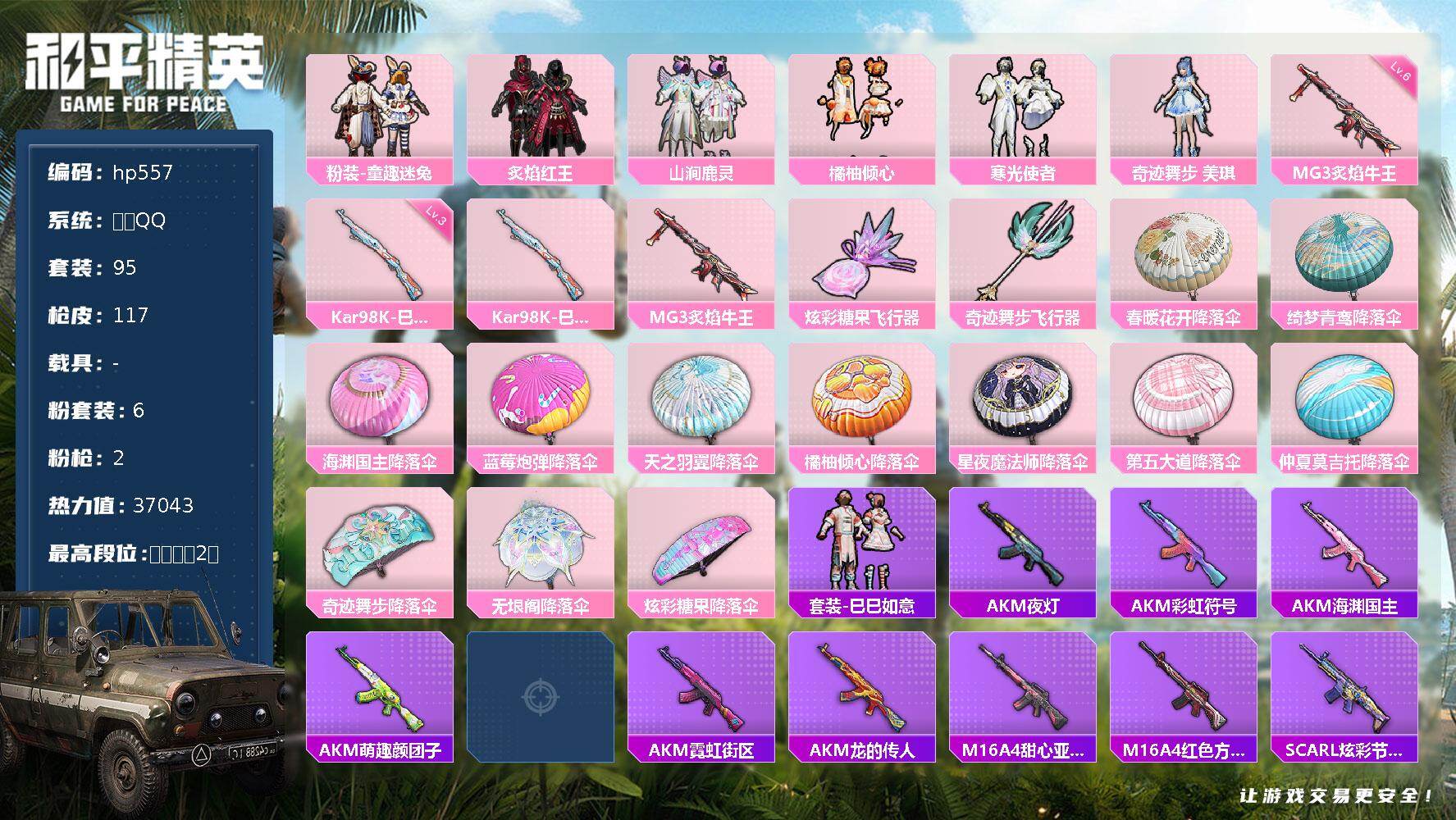 安卓 手Q-6粉装-2特效枪-0载具-2粉色飞行器-37043热力值-2王牌印