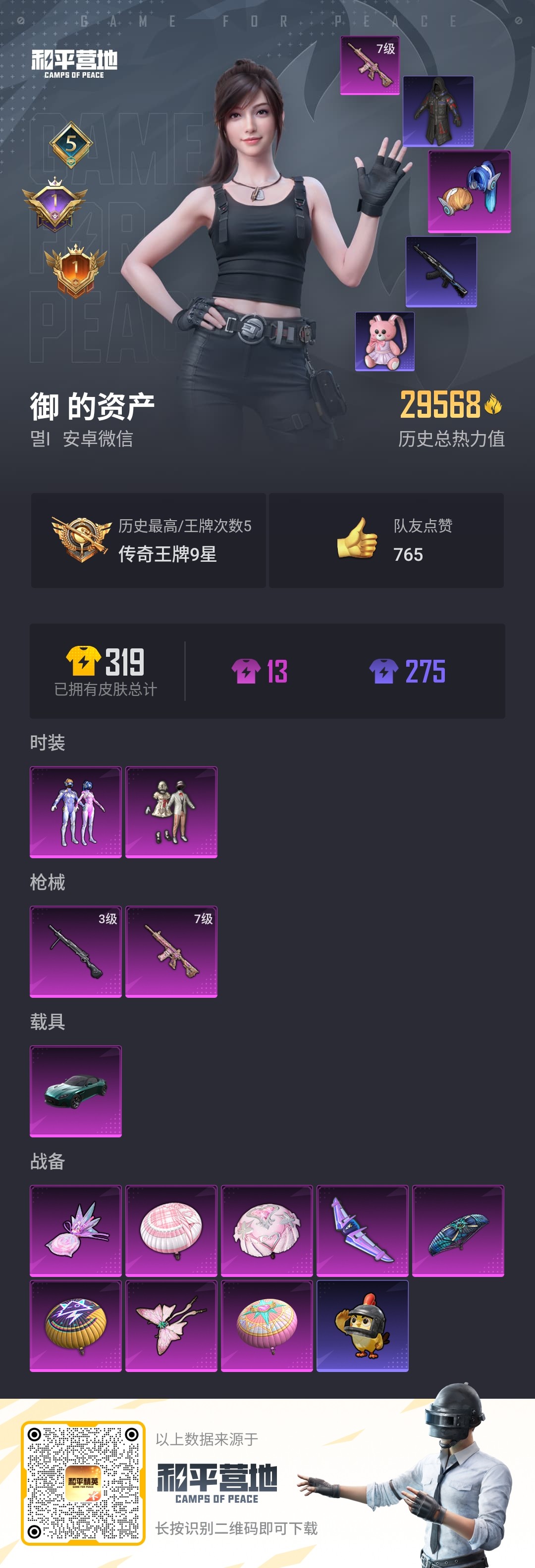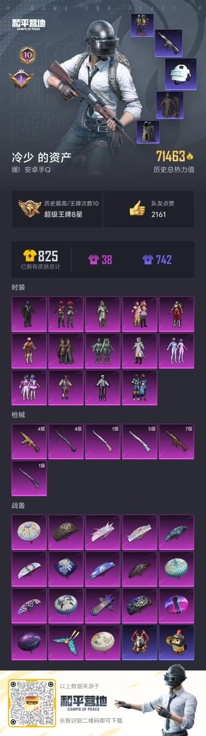 和平王者连体,和平有国标!火箭少女全套,双粉装四把特效枪,王者有梅西很多老款皮肤!荣耀水晶马上出