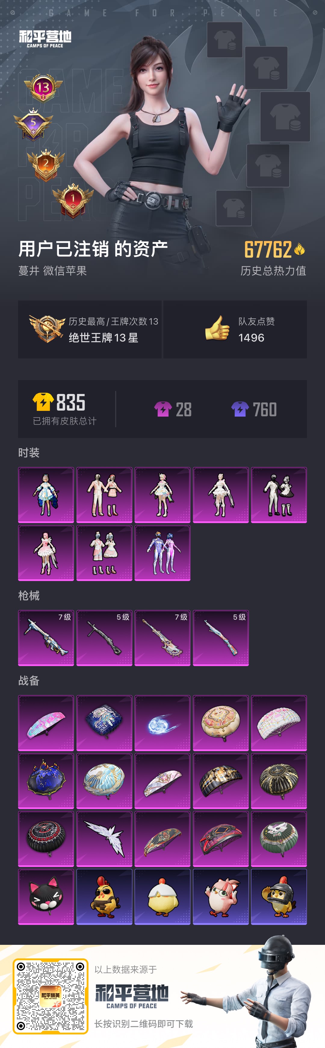 a3757/苹果QQ/九级至情至圣/-9王牌印记-1粉装-5特效枪-1载具-46249热力值-106