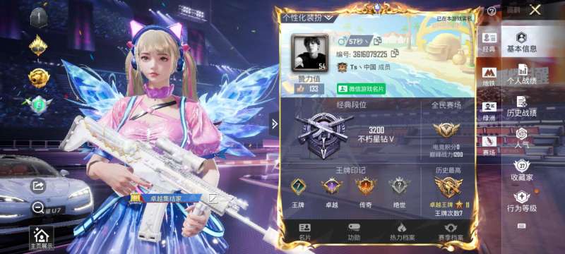 150套装/枪械10/装备248/载具1/战备153/王牌印记7/热力值653