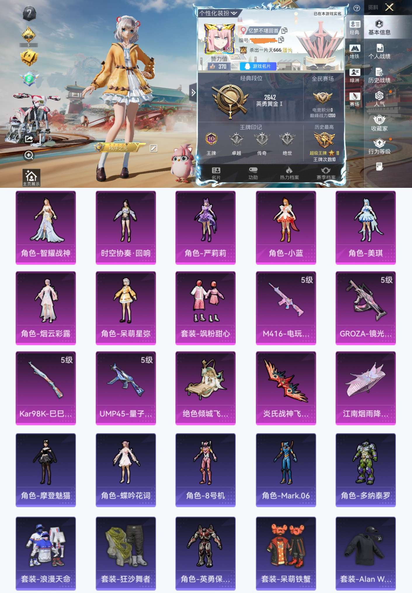 安卓 手Q-3粉装-3特效枪-3载具-1粉色飞行器-41510热力值-7王牌印记