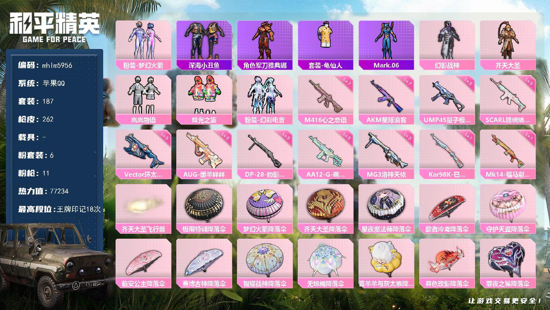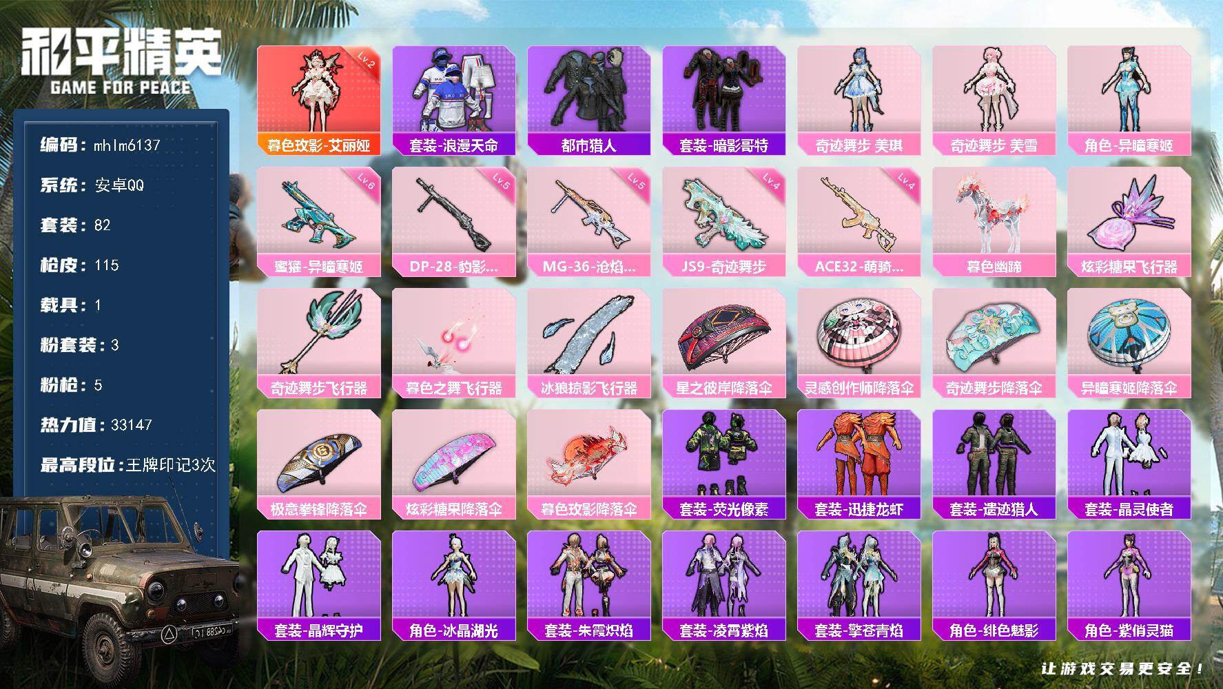 hs57995 安卓手Q-15王牌印记-4粉装-7特效枪-1载具-59282热力值-117套装-17
