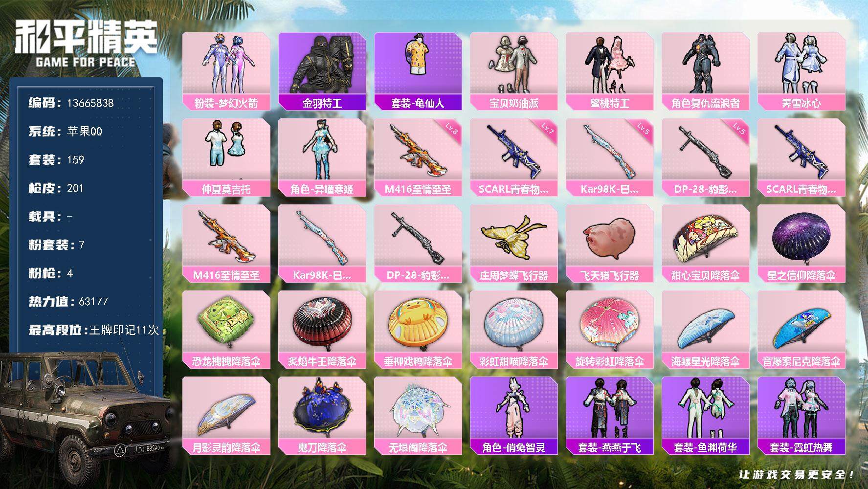 159套装/枪械4/装备231/战备143/王牌印记11/热力值63177/七