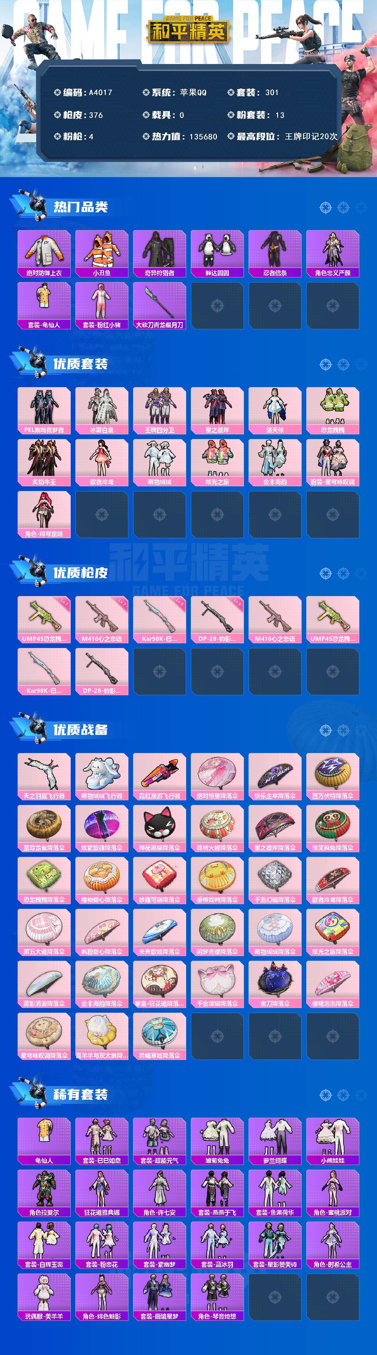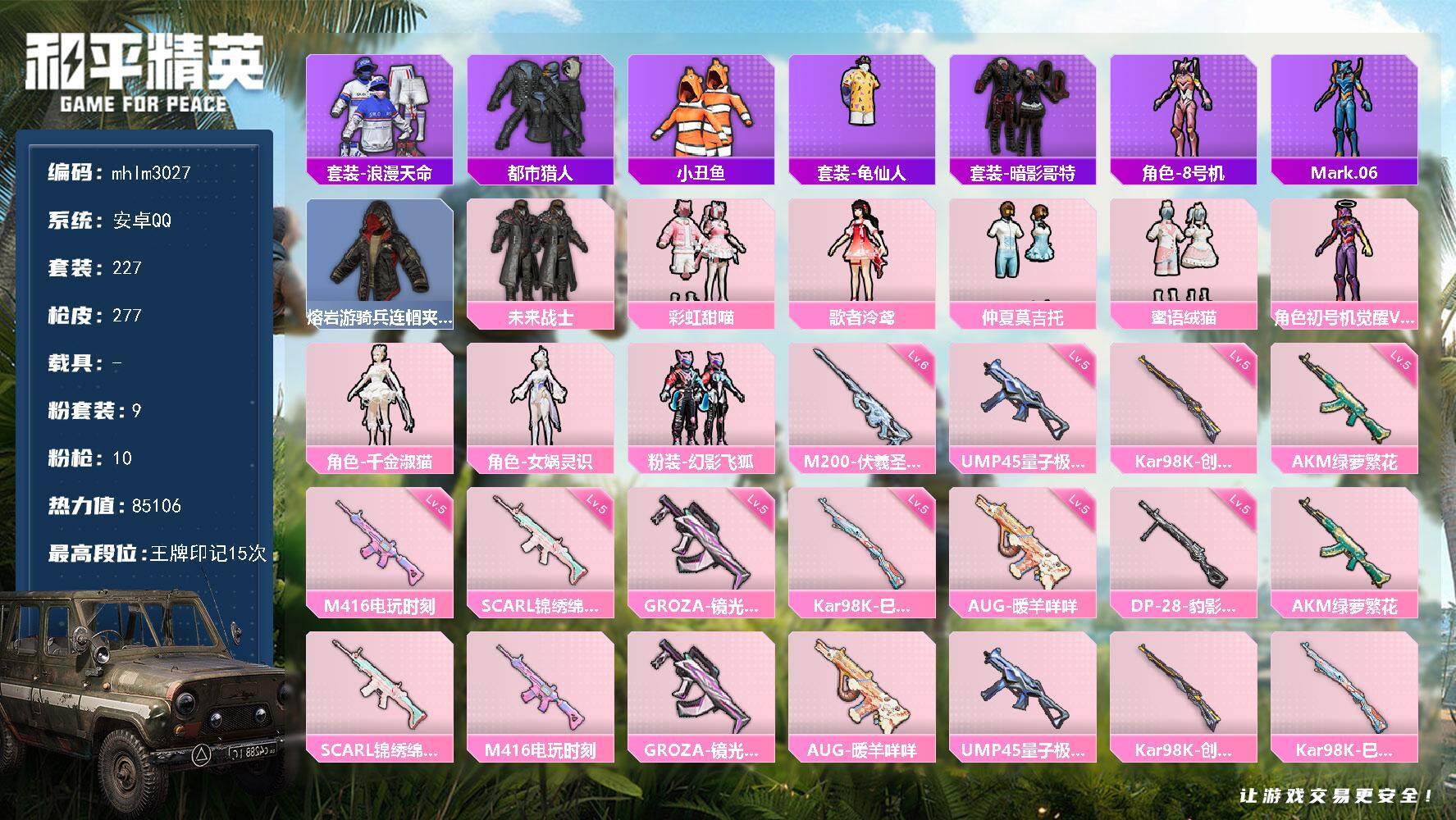 hs40916 安卓手Q-15王牌印记-5粉装-6特效枪-3载具-73509热力值-133套装-20