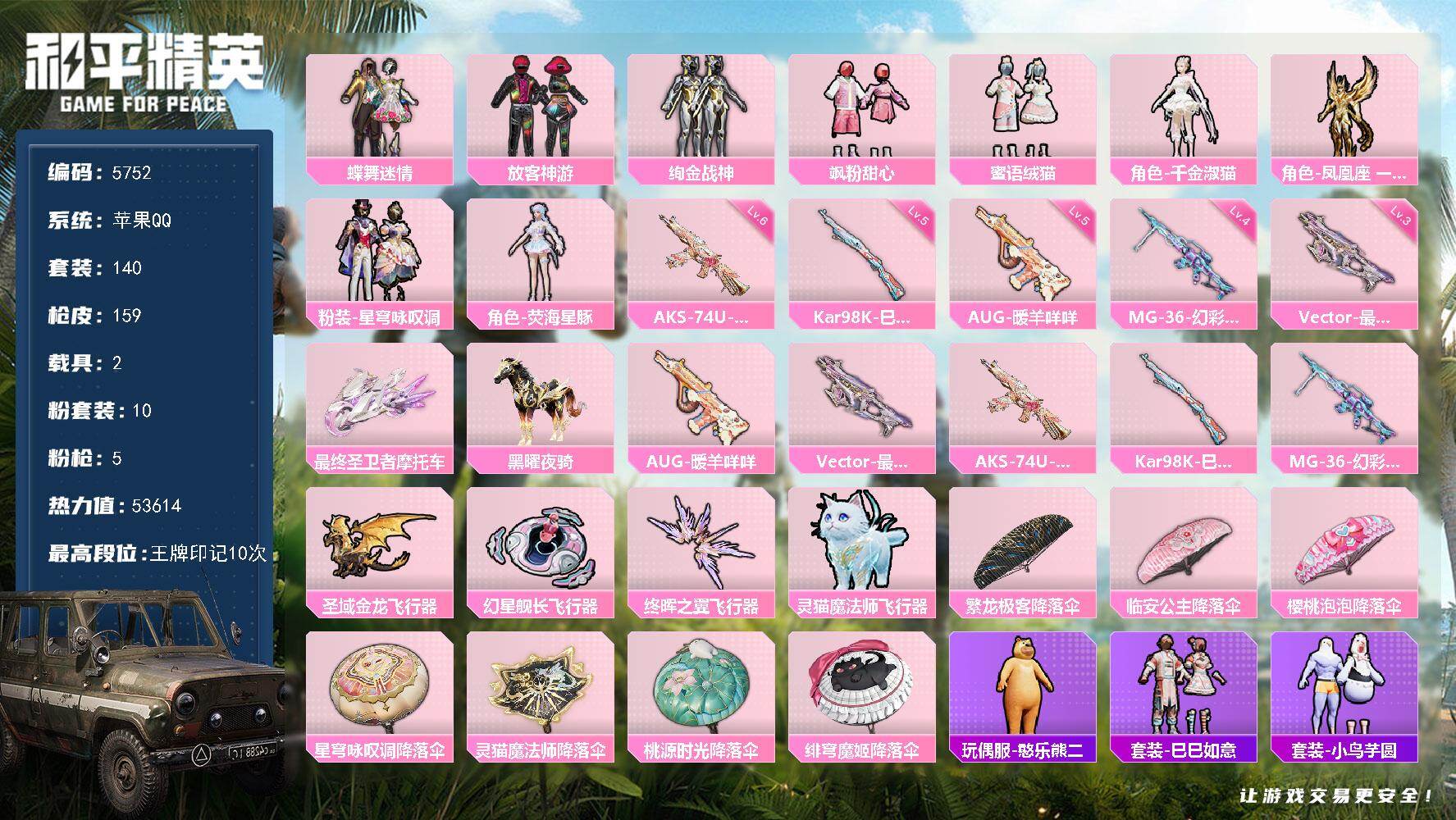 【5752】10粉装-5特效枪-2载具-53614热力值-10印记-140套装