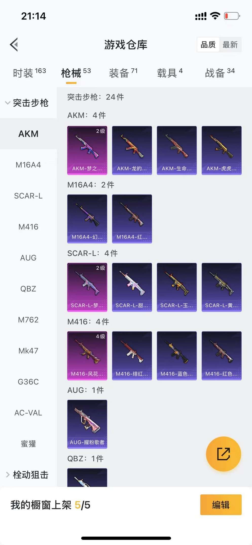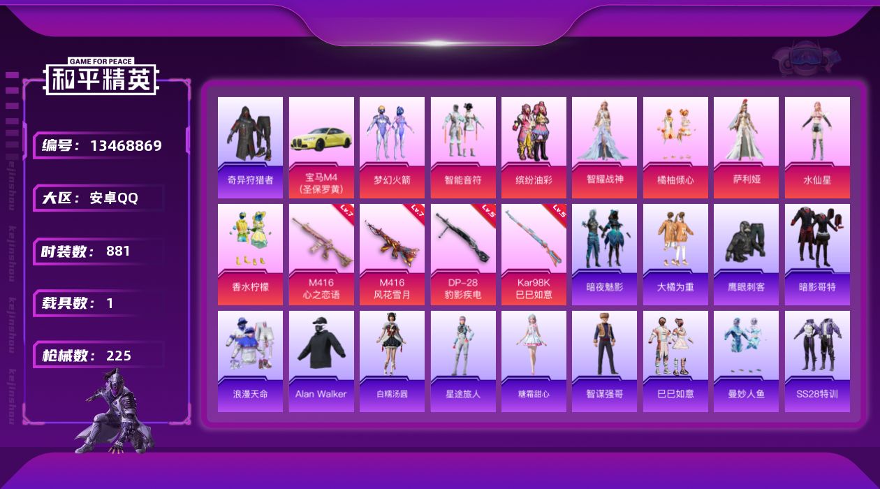 a4212/安卓v/热力值:49884,7粉装,6粉枪,1载具,14粉色战备,106套装,153枪