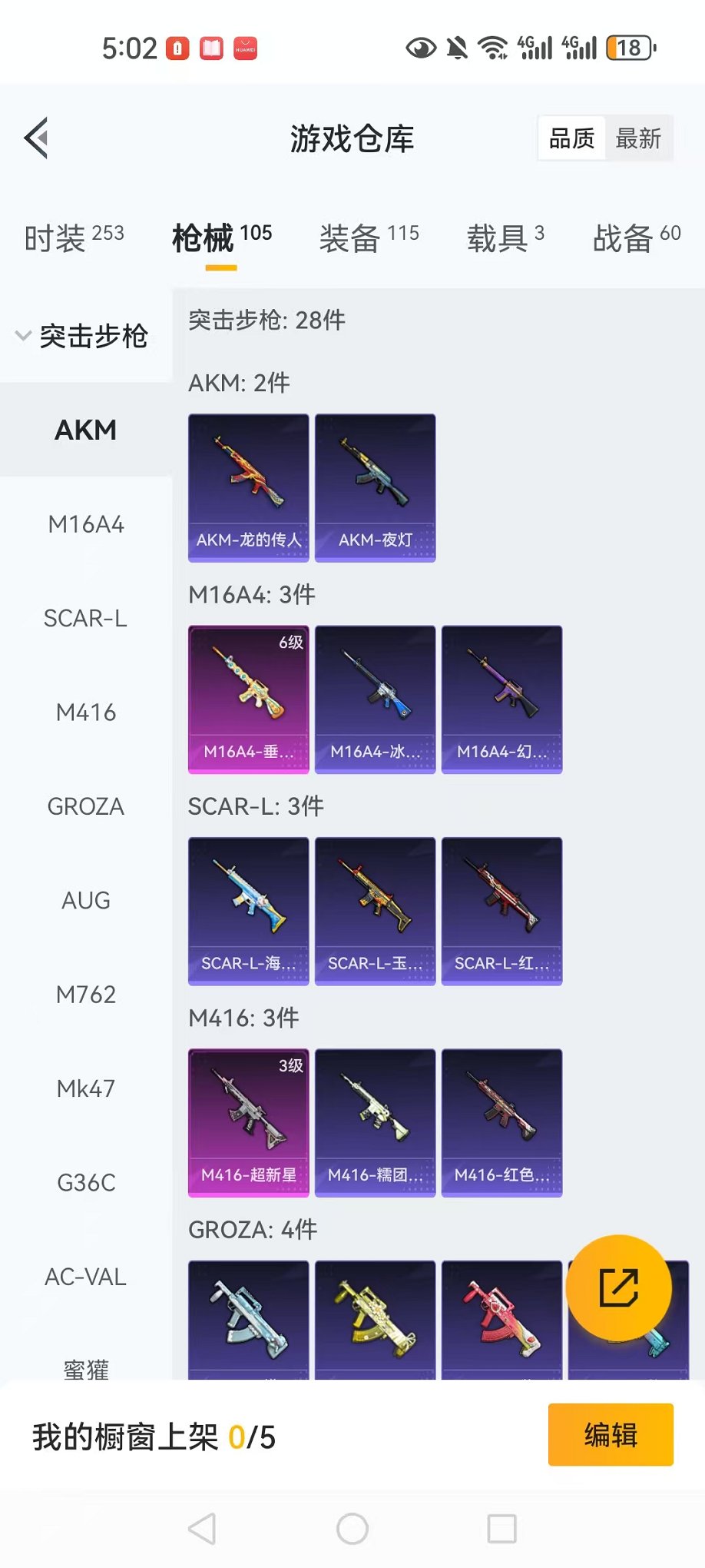 2载具5粉装6特效枪14热门163套装190枪皮 11印记 历史超级王牌4星