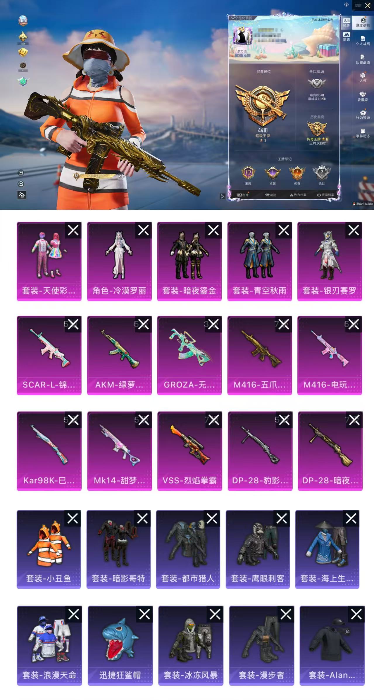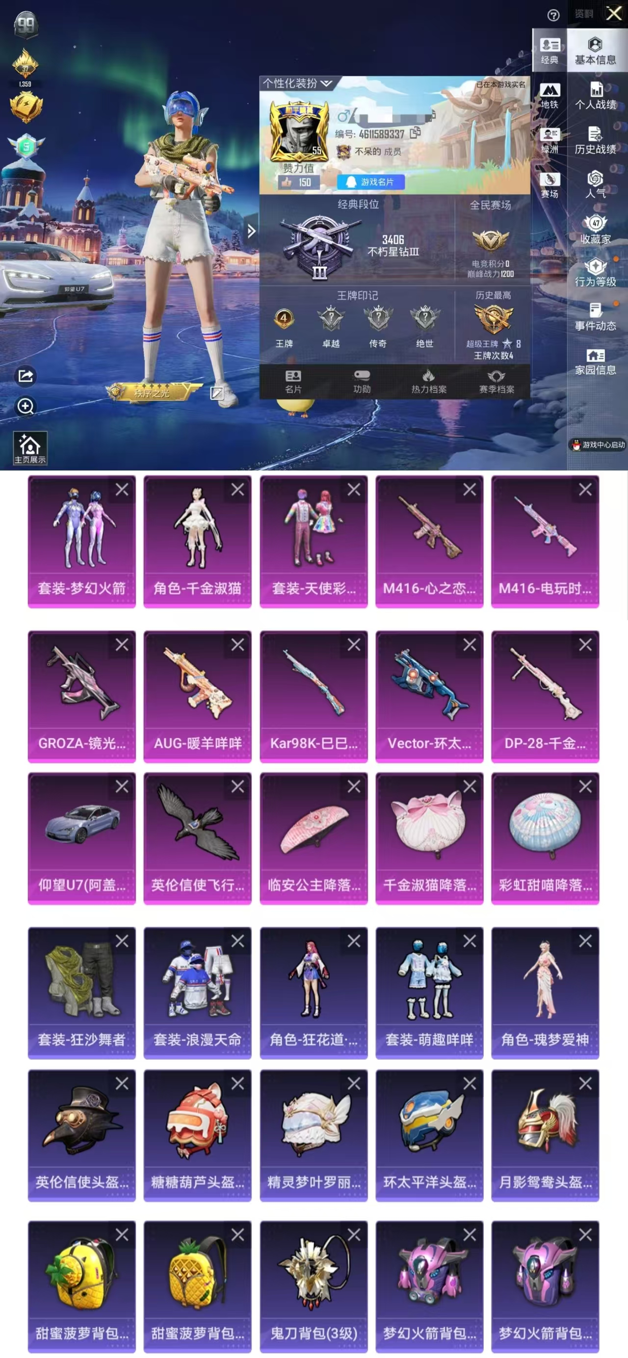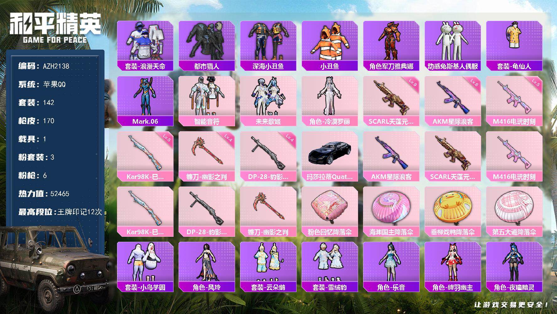 梦幻火箭满级AK、6粉装3特效枪2载具、秒换绑不用等