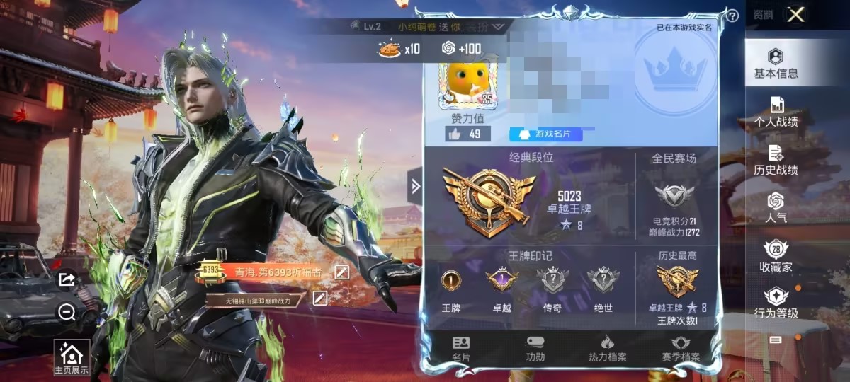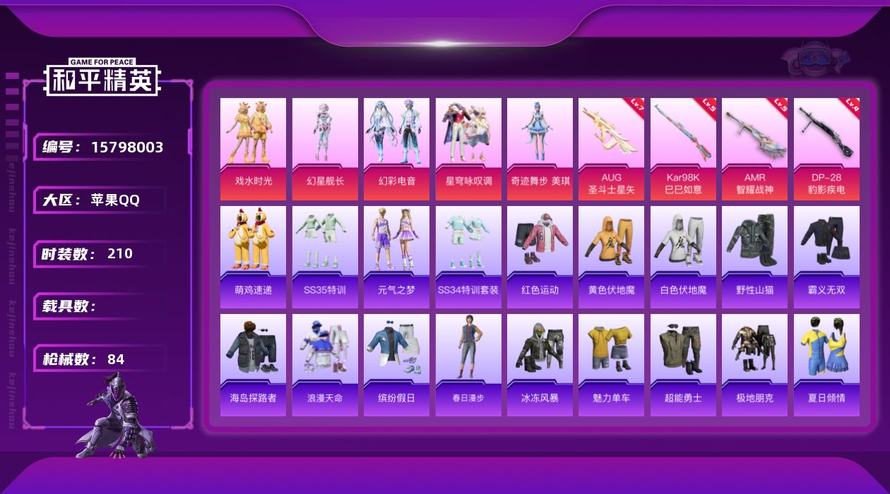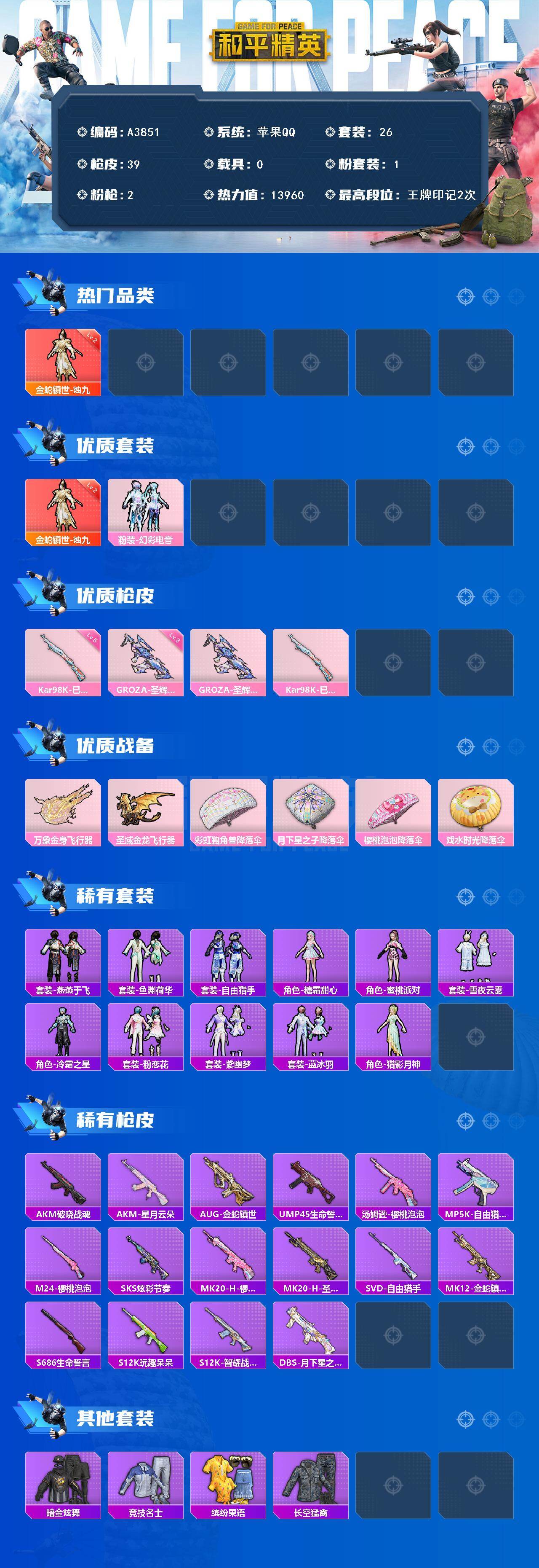 1神装-1粉装-2特效枪-0载具-2粉色飞行器-13960热力值-2王牌印记-26套装-39枪皮