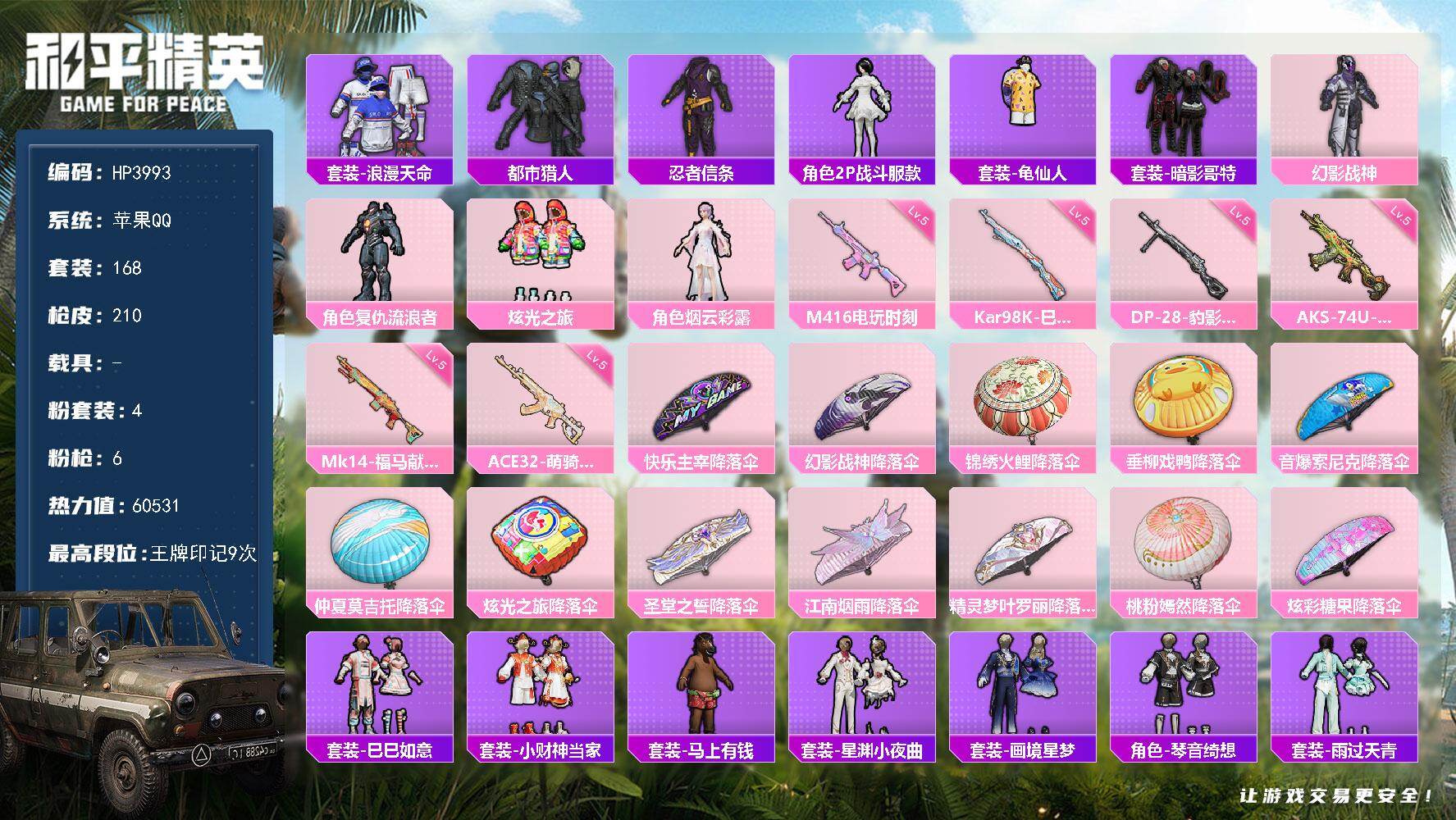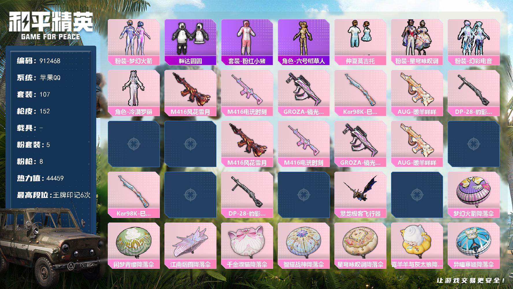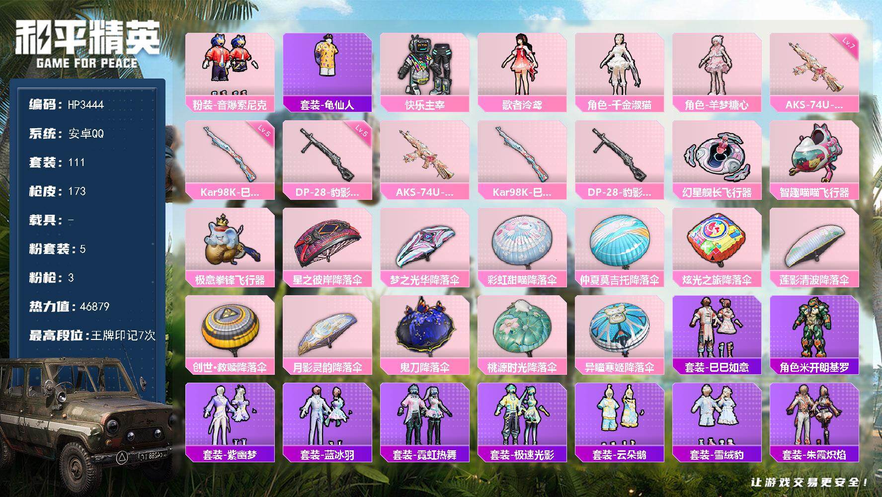 【HP4091】97套装/枪械3/装备149/载具2/战备94/王牌印记9/热力