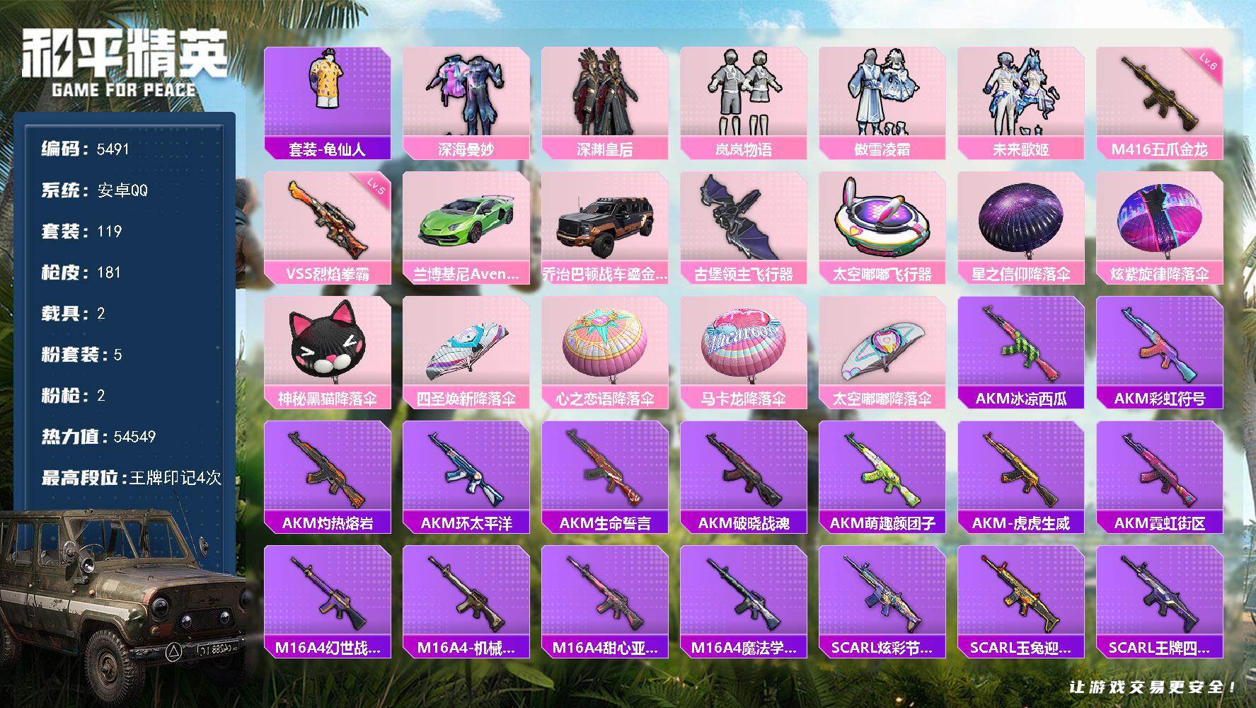 5粉装-2特效枪-2载具-2粉色飞行器-54549热力值-4王牌印记-119套装-181枪皮