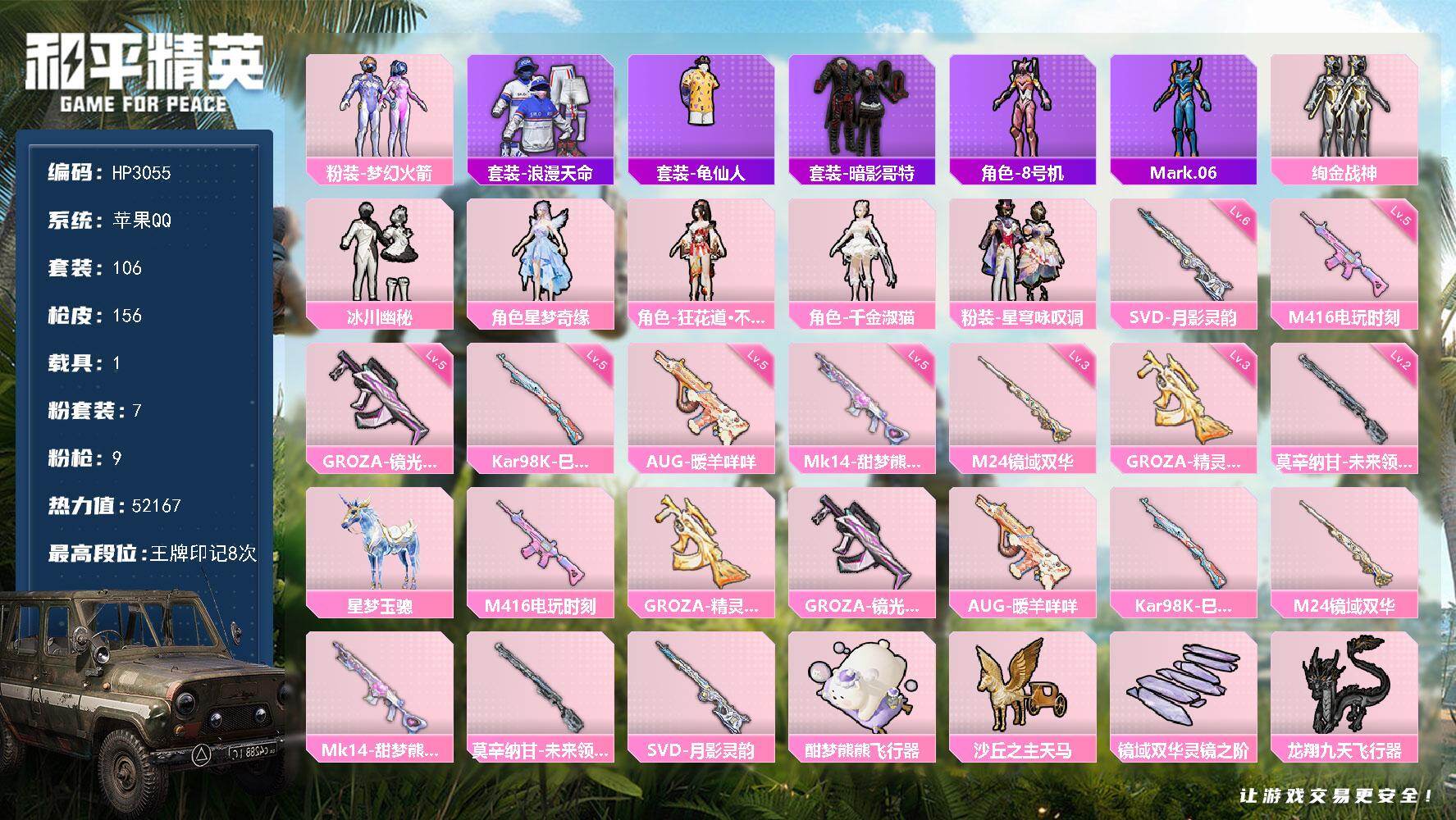 hs51786 苹果手Q-11王牌印记-2粉装-2特效枪-2载具-64414热力值-159套装-18