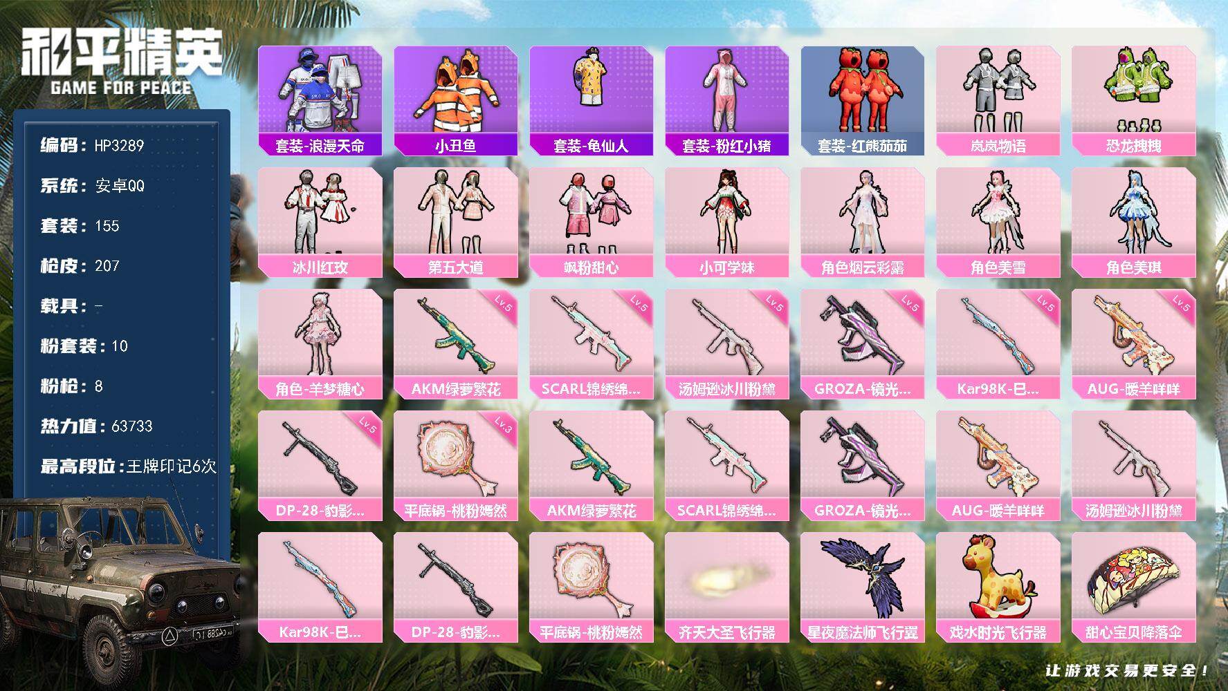 安卓 手Q-10粉装-8特效枪-0载具-4粉色飞行器-63733热力值-6王牌