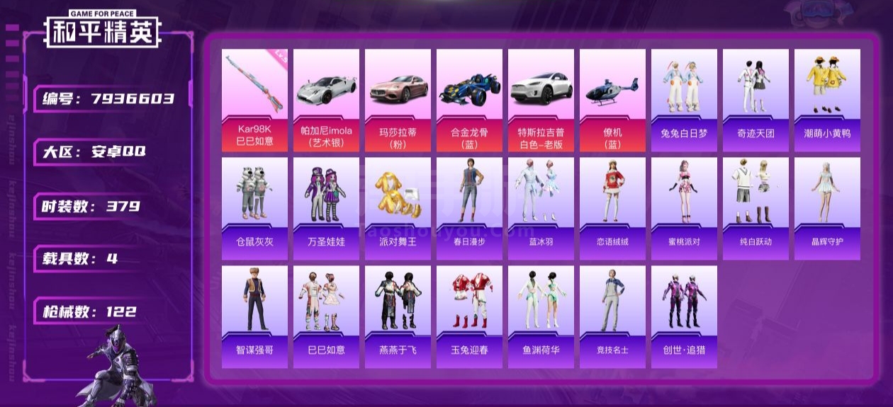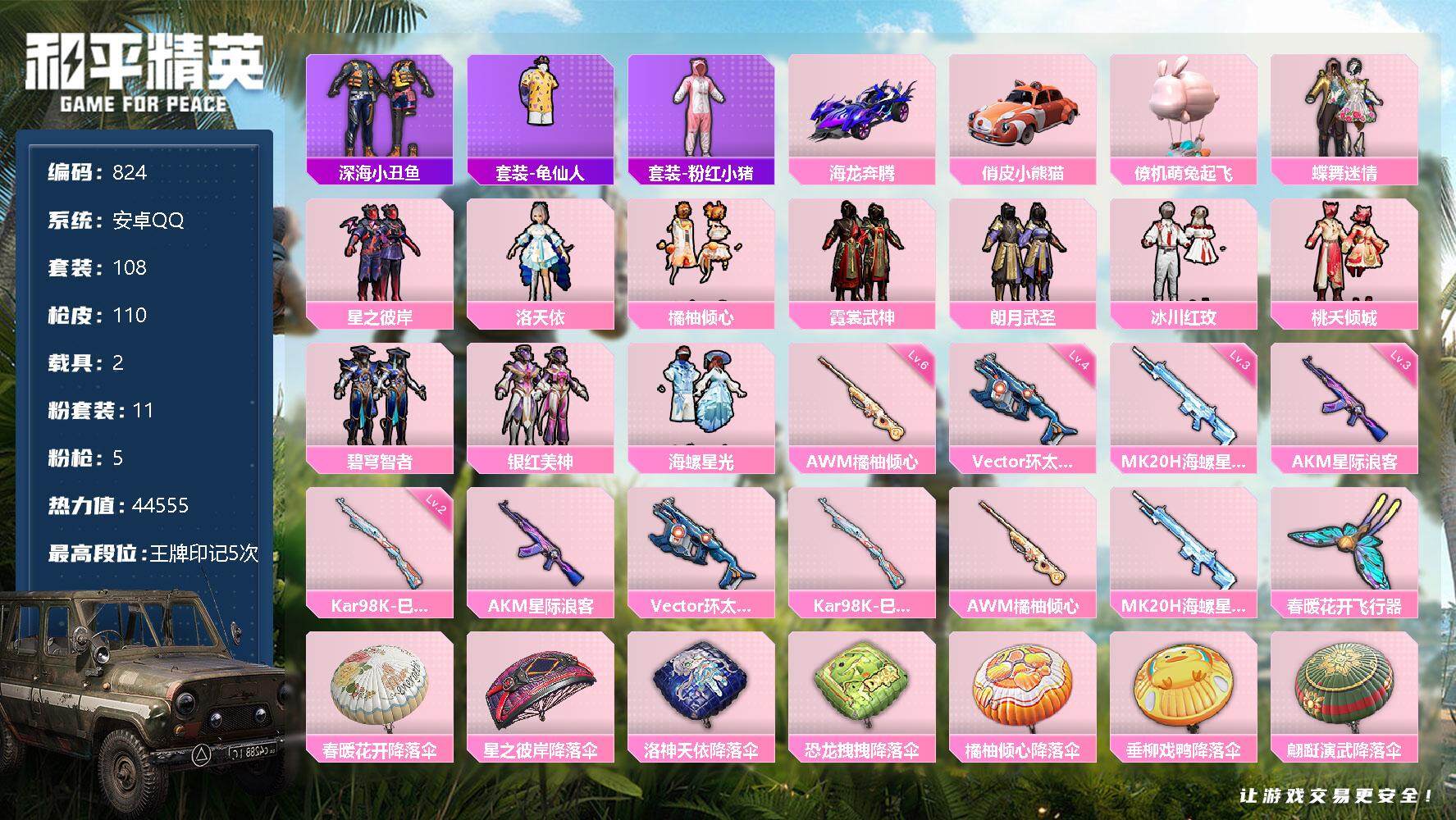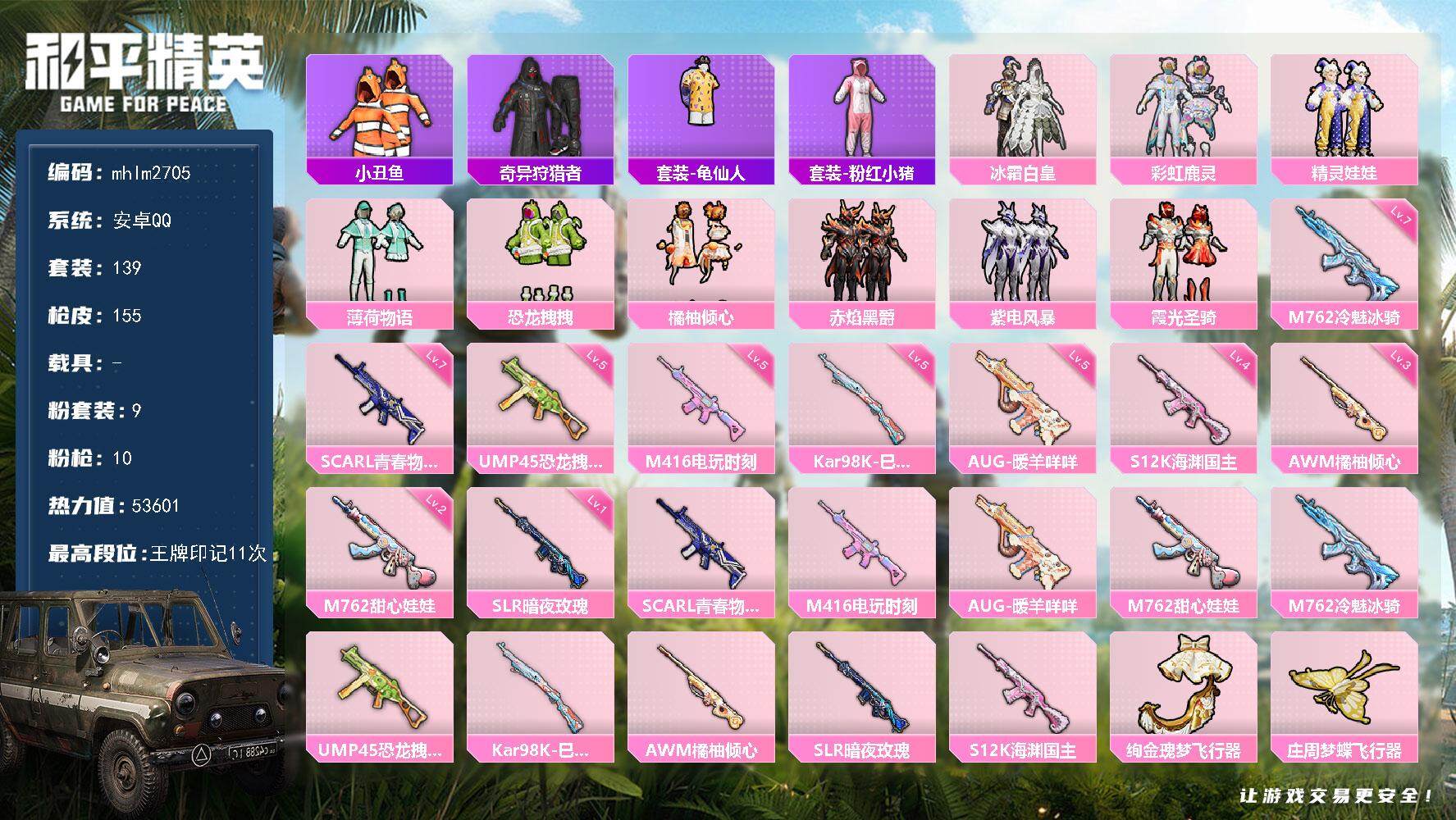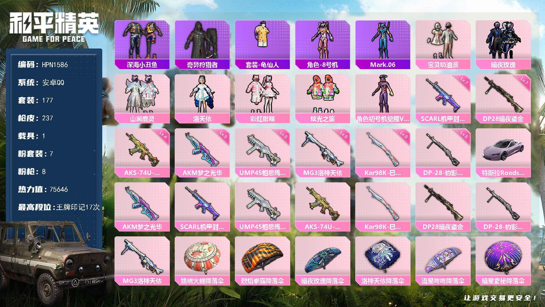 hs47827 安卓手Q-7王牌印记-4粉装-5特效枪-1载具-42112热力值-84套装-134枪