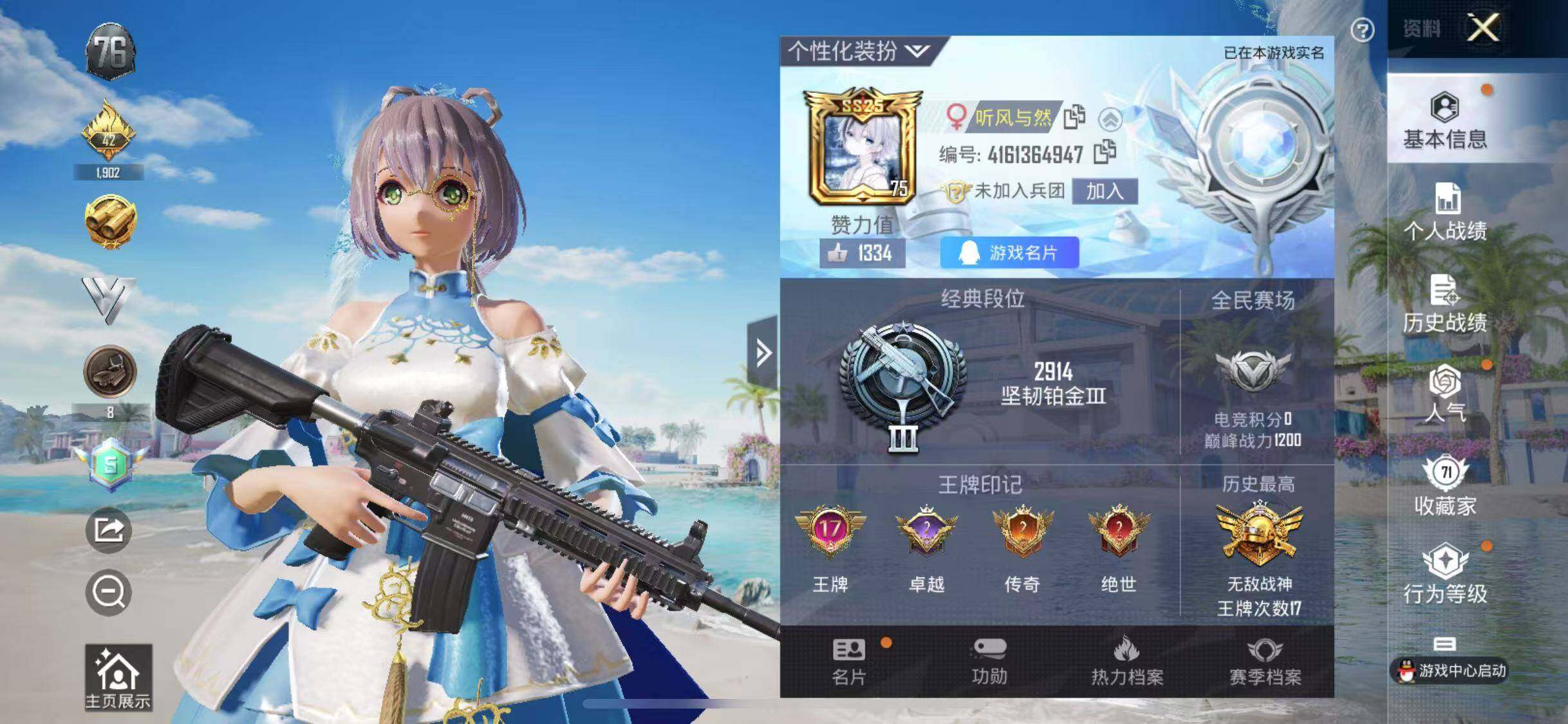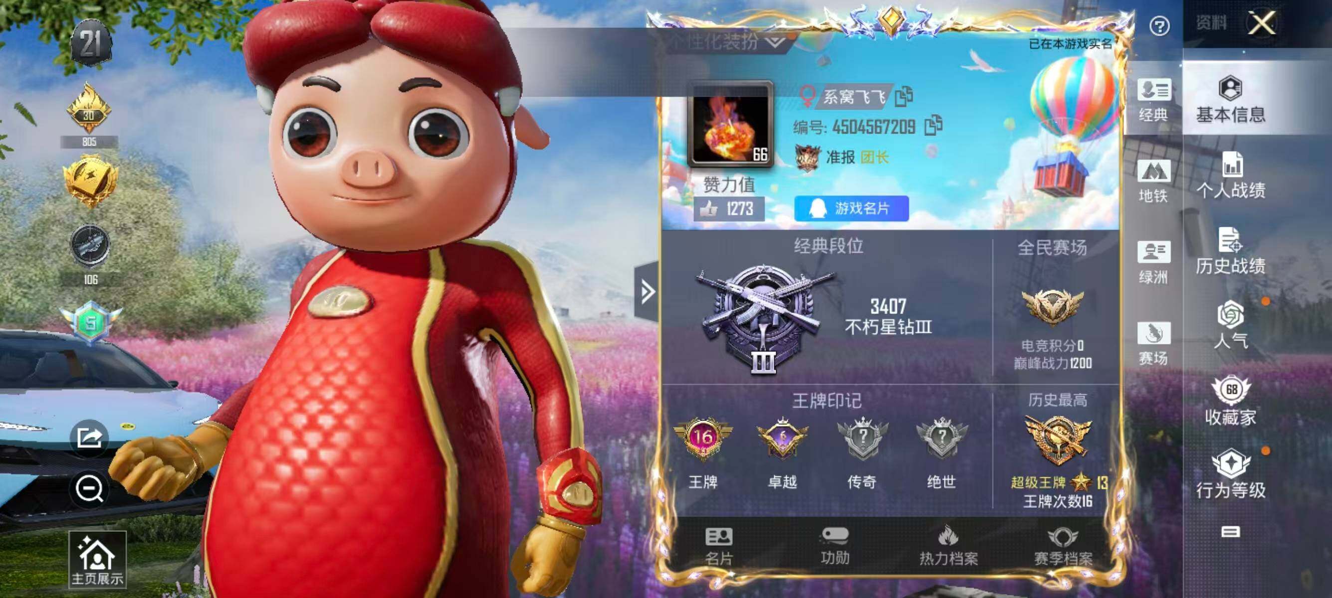 177套装/枪械8/装备274/载具1/战备188/王牌印记17/热力值75646/