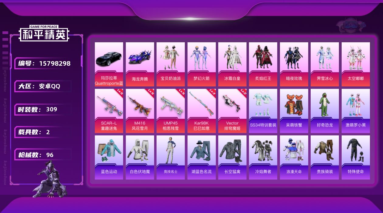 【商品标题】:安卓 手Q-7粉装-3特效枪-2载具-58099热力值-10印记